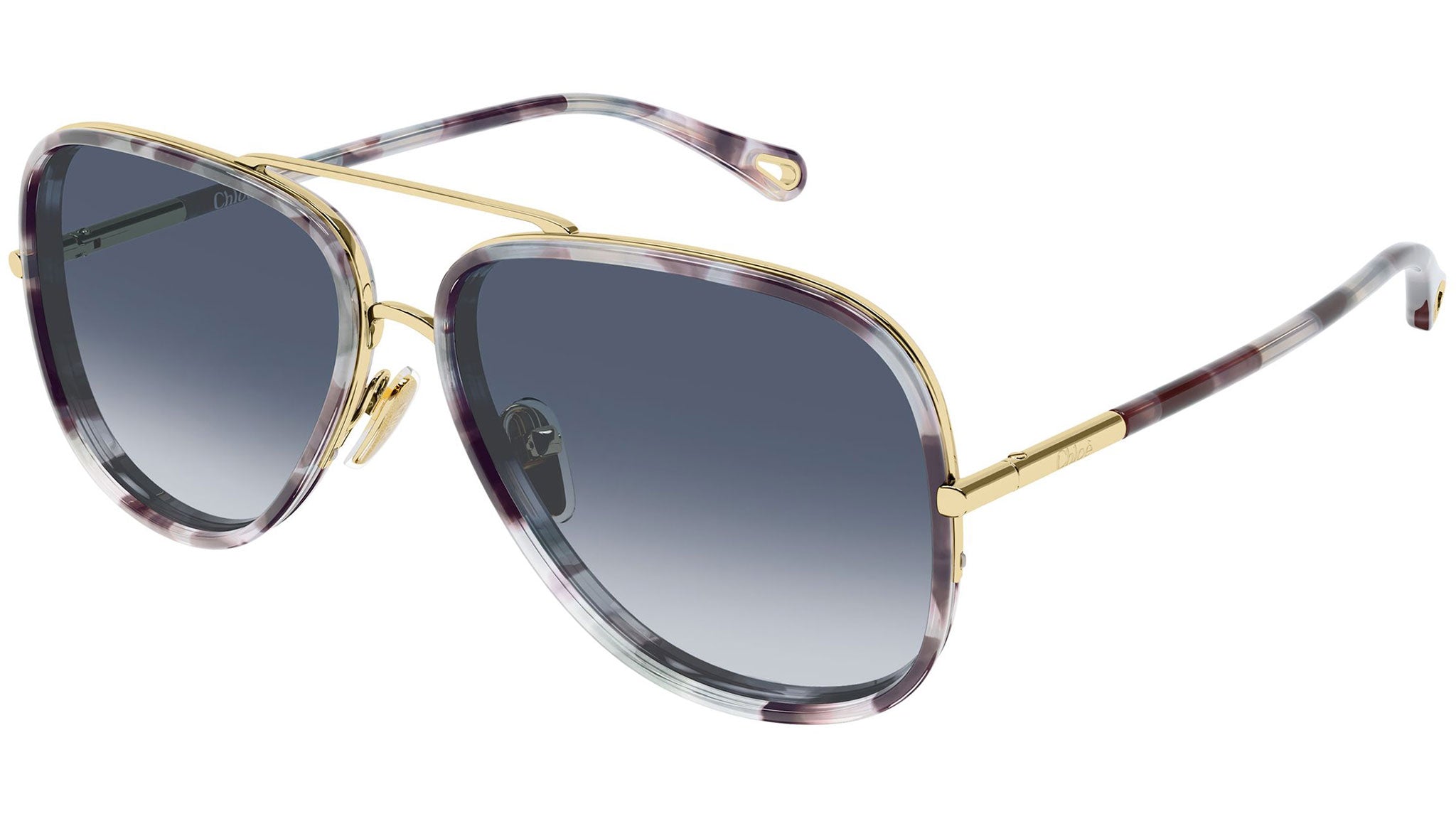 Occhiali da sole Chloé CH0382S 001 donna con montatura aviatore in metallo oro endura lucido e lenti blu sfumato. Linea: Chloé. Codice modello: CH0382S. Codice colore: 001. Made in Italy. Rivenditore autorizzato Chloé Eyewear online. Gli occhiali vengono consegnati con custodia e accessori originali e sono coperti dalla garanzia ufficiale di 12 mesi del produttore.