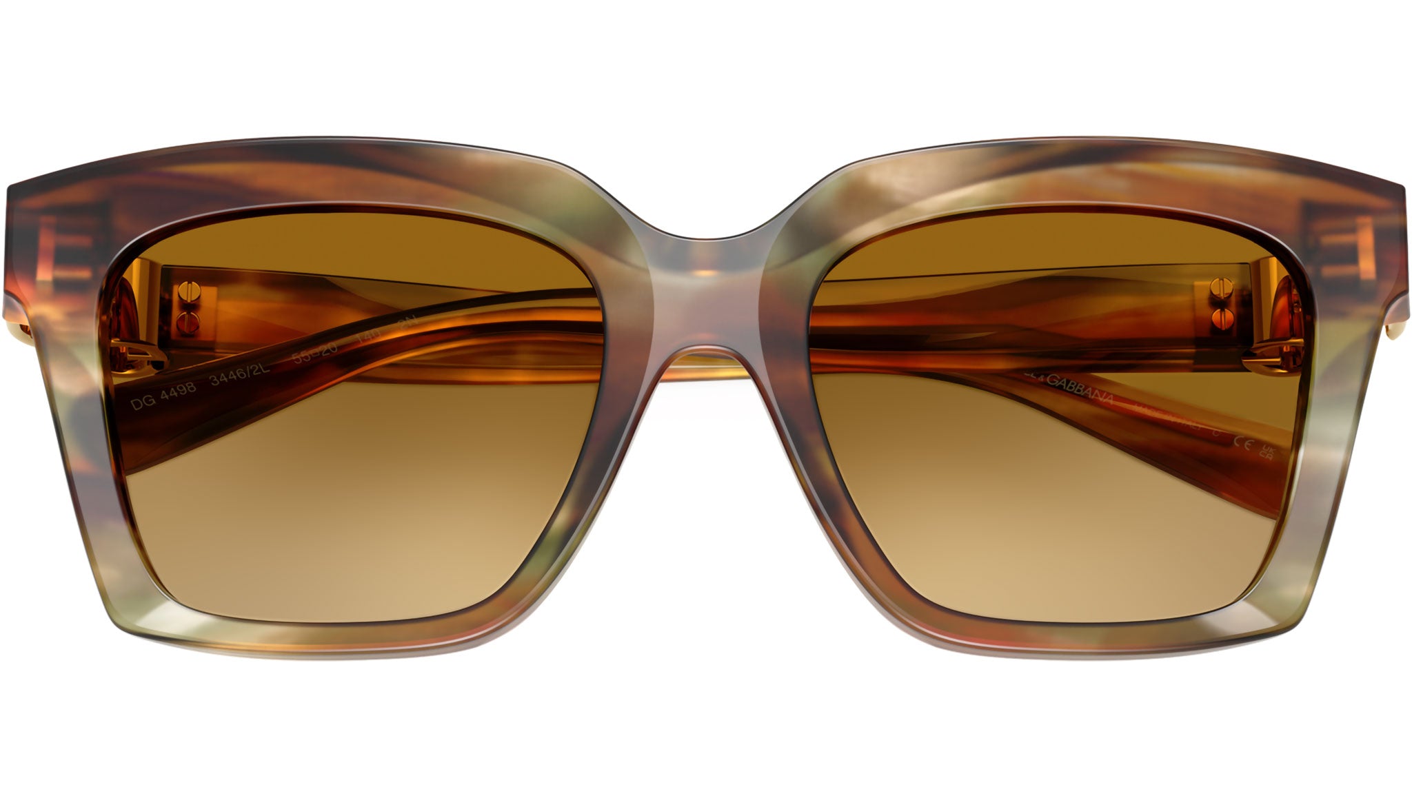 Occhiali da sole Dolce & Gabbana DG 4498 34462L donna con montatura squadrata in acetato ocra a righe e lenti in nylon color giallo chiaro sfumato marrone. Fit universale. Linea: Dna. Codice modello: 0DG4498. Codice colore: 34462L. Made in Italy. Rivenditore autorizzato Dolce & Gabbana online. Gli occhiali vengono consegnati con custodia e accessori originali e sono coperti dalla garanzia ufficiale di 12 mesi del produttore.