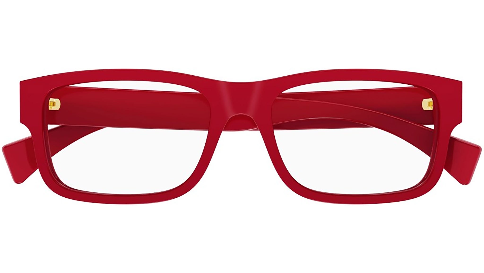 Occhiali da vista Gucci linea Gucci Logo modello GG1141O variante colore 006 rosso classico tinta unita lucido con astine color rosso.