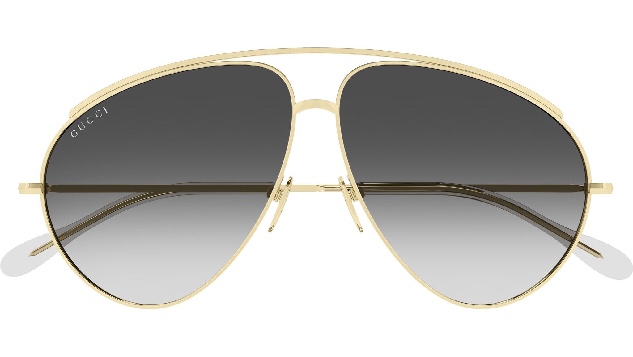 Occhiali da sole Gucci GG1654S 012 donna con montatura aviatore in metallo oro endura lucido e lenti grigio sfumato in bio nylon. Linea: Fashion. Codice modello: GG1654S. Codice colore: 012. Made in Italy. Rivenditore autorizzato Gucci online. Gli occhiali vengono consegnati con custodia e accessori originali e sono coperti dalla garanzia ufficiale di 12 mesi del produttore.