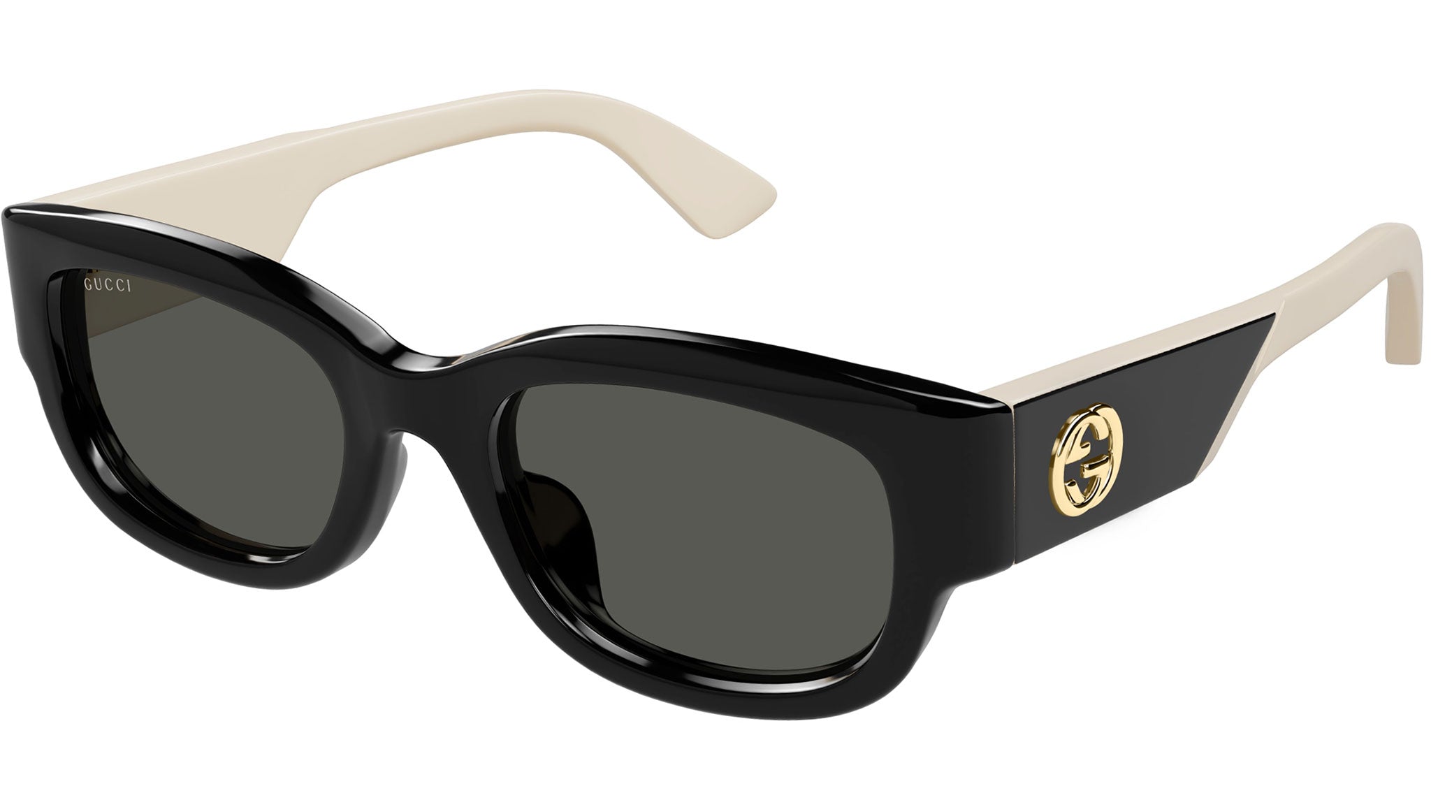 Occhiali da sole Gucci modello GG1667SK linea GG Logo in acetato riciclato forma pantos codice colore 001 nero lucido con aste avorio e lenti grigio tinta unita. Rivenditore autorizzato Gucci online. Gli occhiali vengono consegnati con custodia e accessori originali e sono coperti dalla garanzia ufficiale di 12 mesi del produttore.