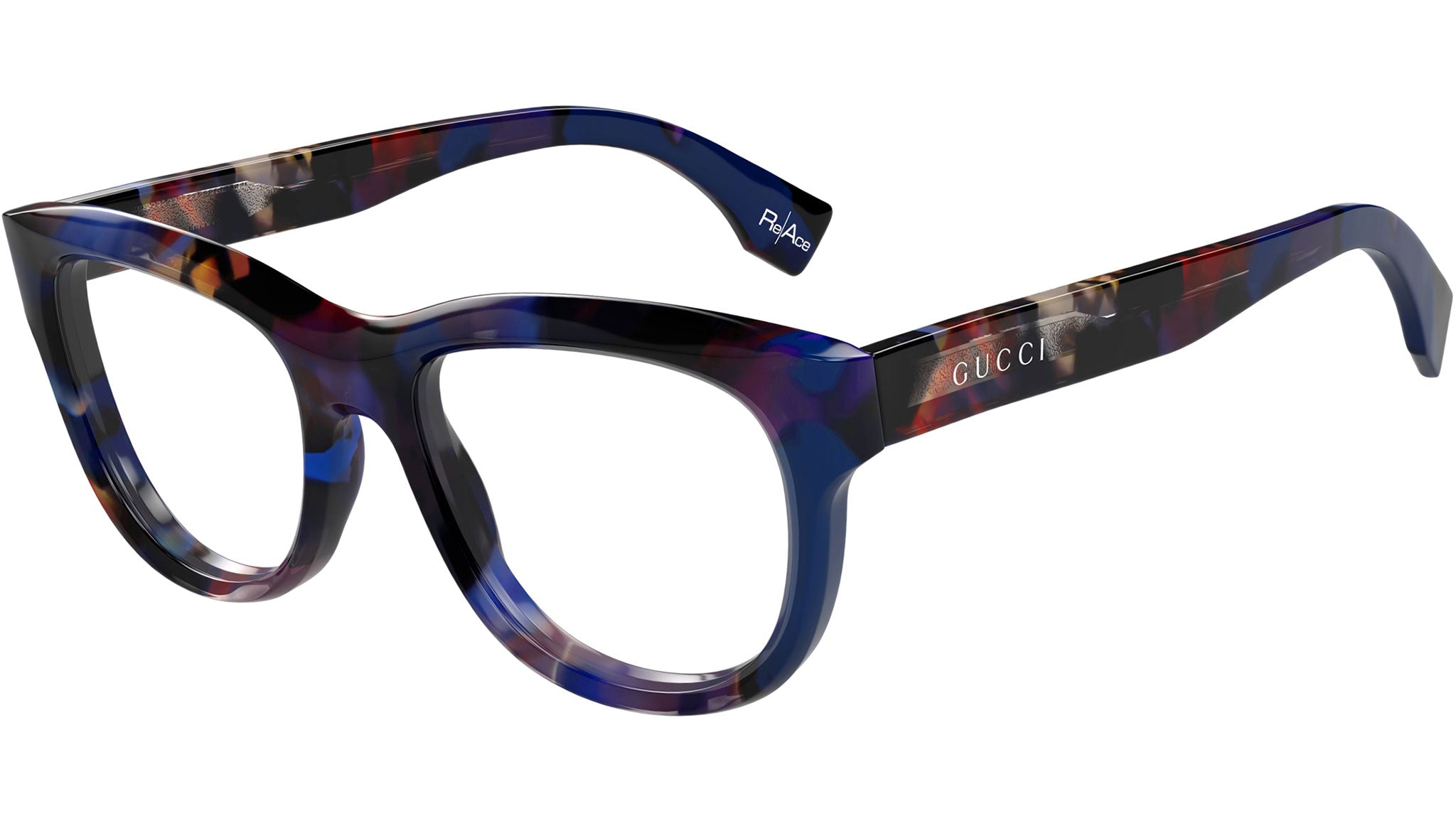 Occhiali da vista Gucci modello GG1751O linea Lettering in acetato riciclato forma rettangolare codice colore 001 avana scuro blu scuro maculato lucido con aste in tartaruga e lenti demo. Rivenditore autorizzato Gucci online. Gli occhiali vengono consegnati con custodia e accessori originali e sono coperti dalla garanzia ufficiale di 12 mesi del produttore.