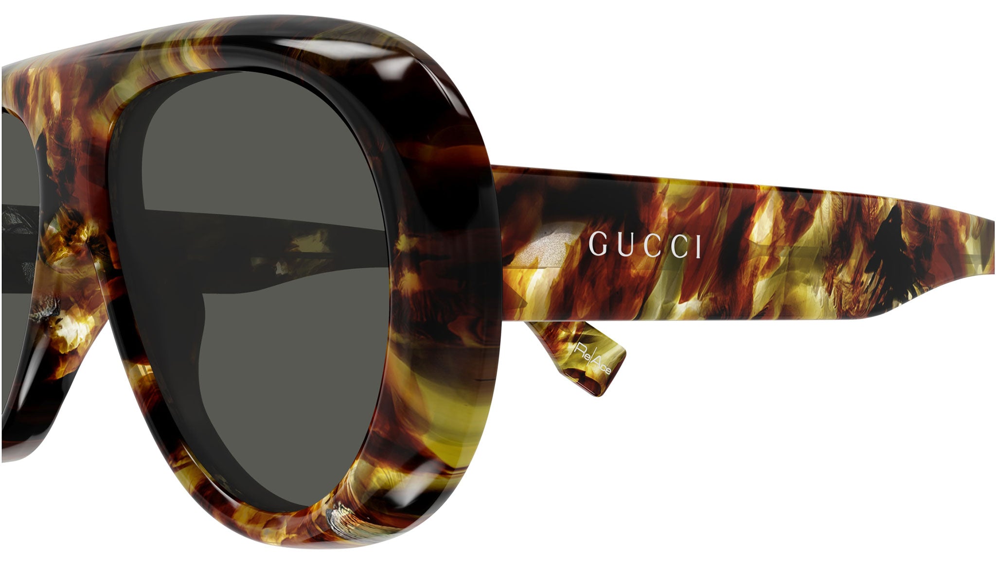 Occhiali da sole Gucci GG1909S 001 uomo con montatura aviatore in acetato riciclato avana vintage maculato e lenti grigio tinta unita. Linea: Lettering. Codice modello: GG1909S. Codice colore: 001. Made in Italy. Rivenditore autorizzato Gucci online. Gli occhiali vengono consegnati con custodia e accessori originali e sono coperti dalla garanzia ufficiale di 12 mesi del produttore.
