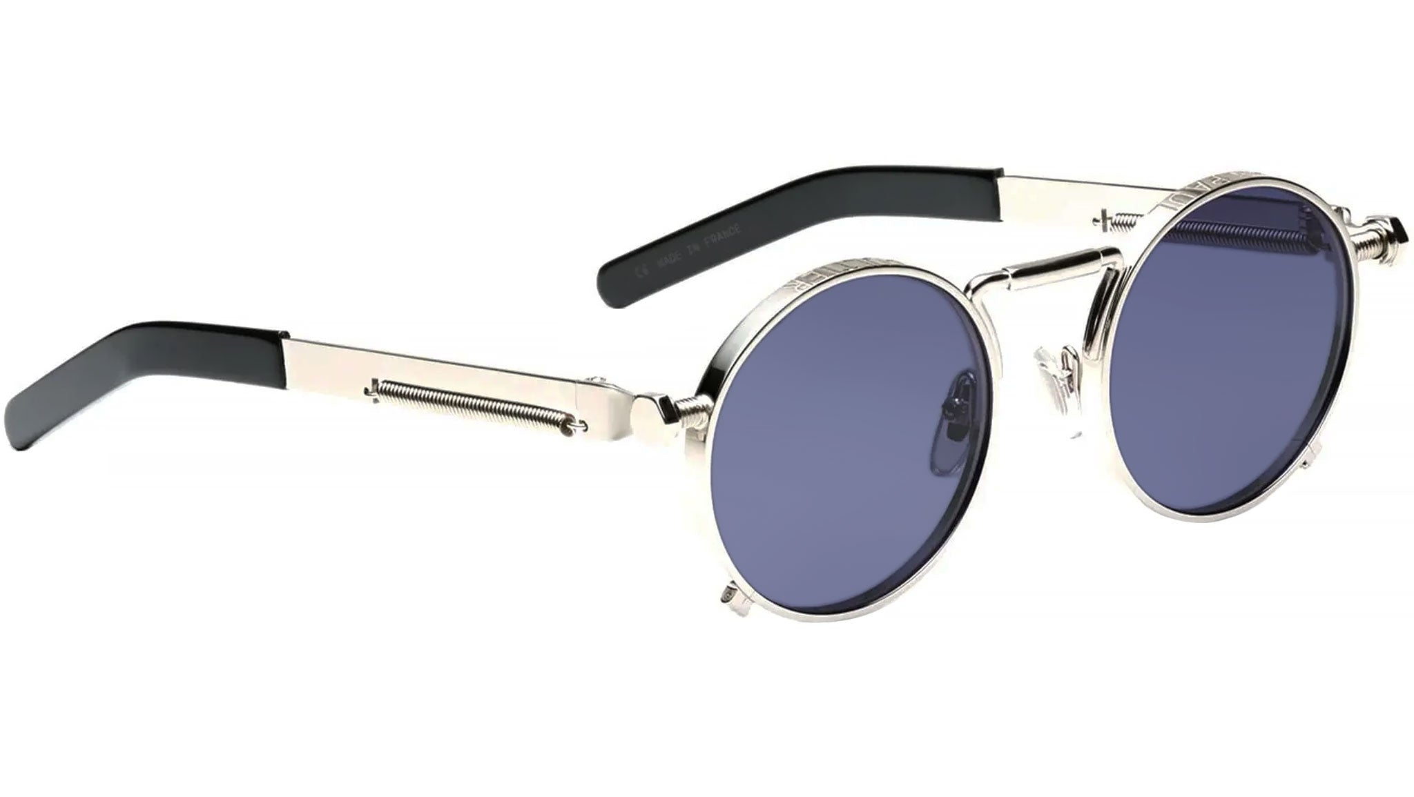 The Jean Paul Gaultier Ressort metal sunglasses showcase a refined round silhouette with silver-toned frames, distinguished by a unique spring detail along the temples that adds a touch of mechanical sophistication. Made in France, this model features high-performance lenses with Category 3 UV filters, offering reliable sun protection along with anti-glare and anti-scratch treatments for enhanced visual comfort and durability. Crafted from a combination of stainless steel, nickel silver, and acetate, the construction is elevated by premium Mazzucchelli acetate temple tips, ensuring both luxury and comfort. The discreet Jean Paul Gaultier logo completes the design with a signature of exclusivity.