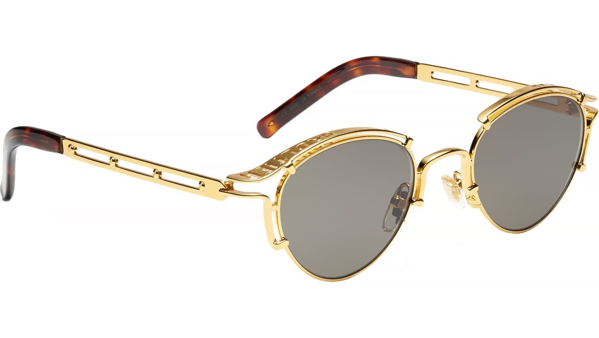 Crafted in France, the Jean Paul Gaultier Sourcil Gold sunglasses feature an elegant oval silhouette with a striking gold metal frame and a distinctive metallic brow detail that pays homage to the brand’s avant-garde heritage. The design is enhanced by green lenses equipped with Category 3 UV filters, providing high sun protection alongside anti-glare and scratch-resistant coatings for lasting clarity. The frame is composed of stainless steel and nickel silver, complemented by premium Mazzucchelli acetate temple tips for added comfort. The Jean Paul Gaultier logo is subtly integrated into the design, underscoring its exclusivity. With a lens width of 49mm and a bridge width of 23mm, this one-size model offers a universally flattering fit.