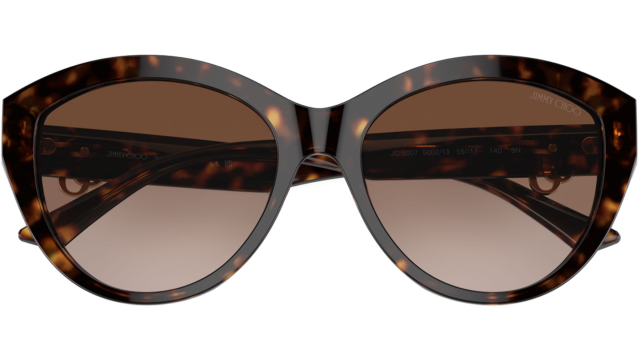 Occhiali da sole Jimmy Choo JC5007 500213 donna, con montatura pantos in acetato color avana e lenti marrone sfumato in bio poliammide. Vestibilità a ponte alto. Linea: JC Monogram. Codice modello: JC5007. Codice colore: 500213. Rivenditore autorizzato Swarovski Eyewear online. Ogni prodotto Swarovski viene consegnato con astuccio originale e accessori ed è coperto da garanzia del produttore di 12 mesi.