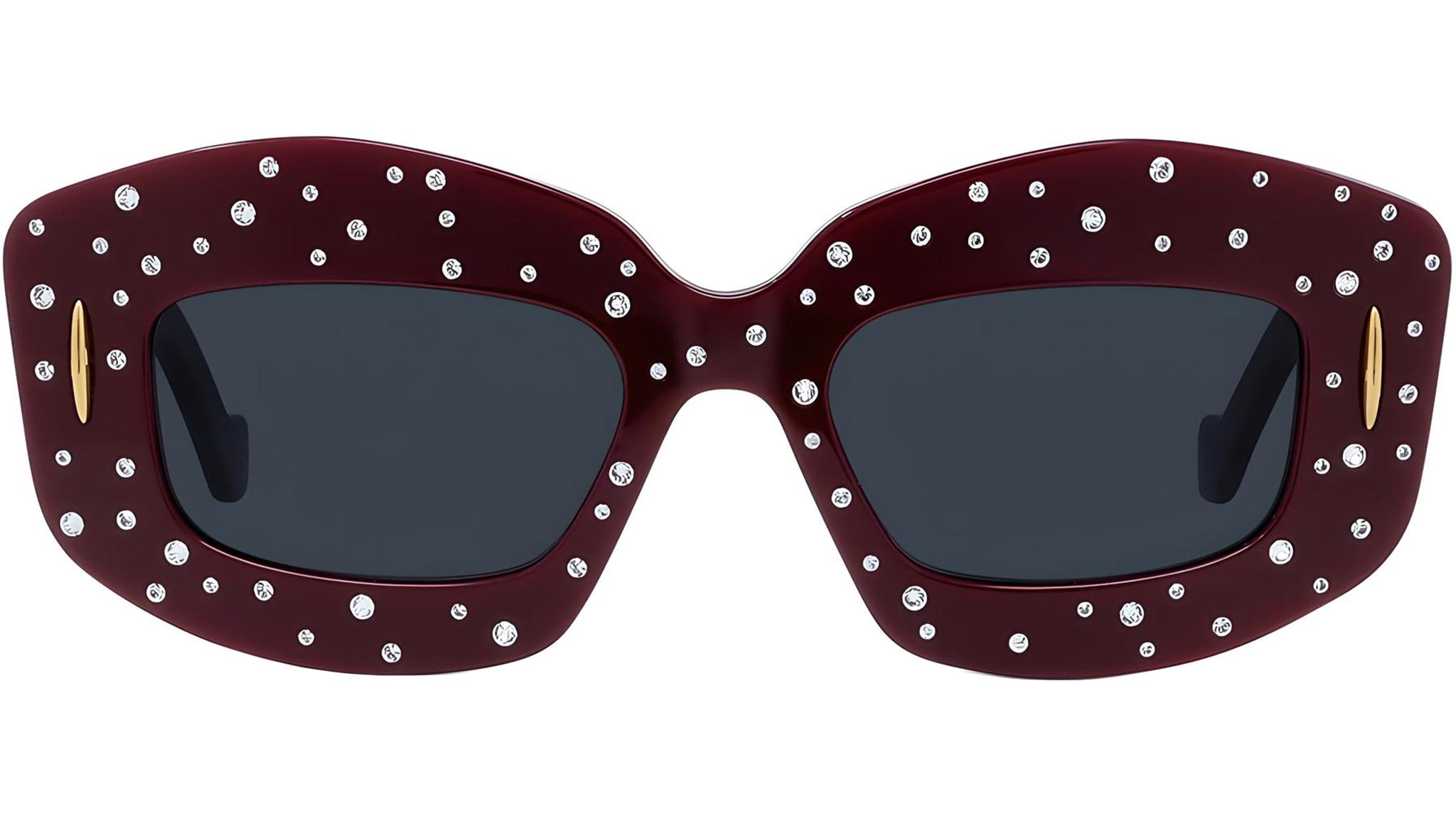Occhiali da sole LOEWE donna linea Anagram modello LW4114IS 66V bordeaux solido. Squisita declinazione della forma Anagram Screen lanciata in autunno, per uno stile alla moda, con delicati strass applicati a mano. In risalto durante la sfilate di moda maschile della Maison - Rivenditore autorizzato LOEWE online. Gli occhiali vengono consegnati con custodia e accessori originali.