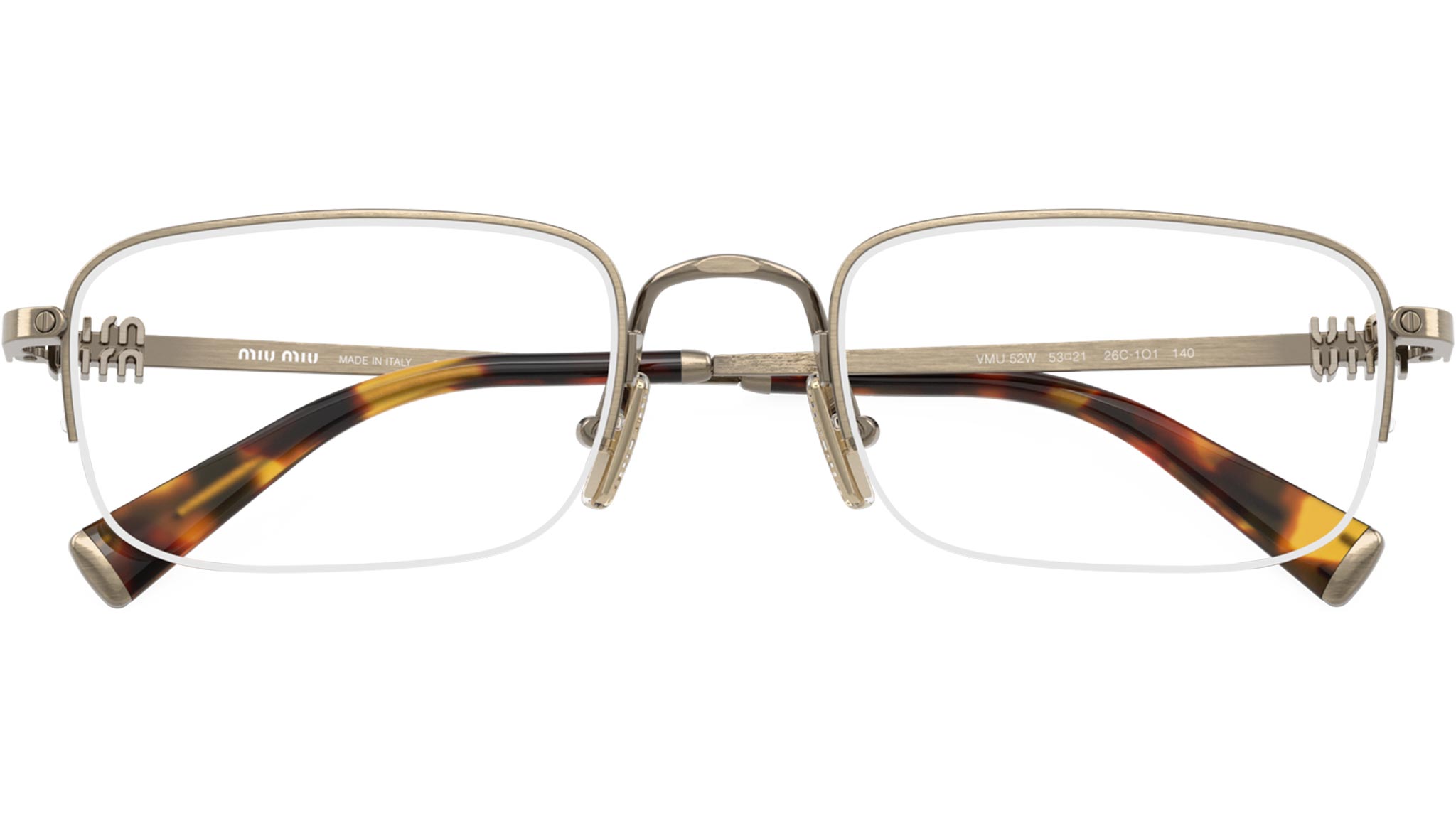 Occhiali da vista Miu Miu MU 52WV 26C1O1 donna con montatura rettangolare in metallo oro antico e lenti demo. Naselli regolabili. Linea: Miu Regard. Codice modello: 0MU 52WV. Codice colore: 26C1O1. Made in Italy. Rivenditore autorizzato Miu Miu online. Gli occhiali vengono consegnati con custodia e accessori originali e sono coperti dalla garanzia ufficiale di 12 mesi del produttore.