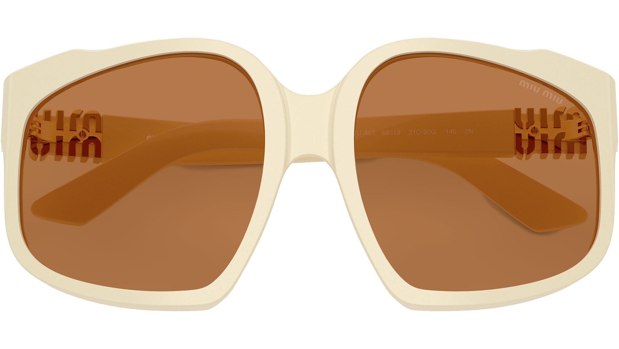 Occhiali da sole Miu Miu MU A07S 21D90Q donna con montatura geometrica in acetato bianco latte e lenti in bio poliammide color marrone. Vestibilità a ponte alto. Linea: Fashion Show. Codice modello: 0MU A07S. Codice colore: 21D90Q. Made in Italy. Rivenditore autorizzato Miu Miu online. Gli occhiali vengono consegnati con custodia e accessori originali e sono coperti dalla garanzia ufficiale di 12 mesi del produttore.