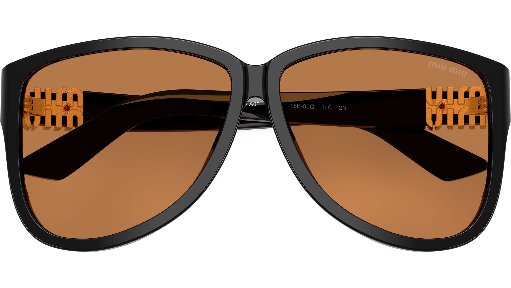 Occhiali da sole Miu Miu MU A08S 16K90Q donna con montatura aviatore in acetato nero e lenti in bio poliammide color marrone. Vestibilità a ponte alto. Linea: Main Collection. Codice modello: 0MU A08S. Codice colore: 16K90Q. Made in Italy. Rivenditore autorizzato Miu Miu online. Gli occhiali vengono consegnati con custodia e accessori originali e sono coperti dalla garanzia ufficiale di 12 mesi del produttore.