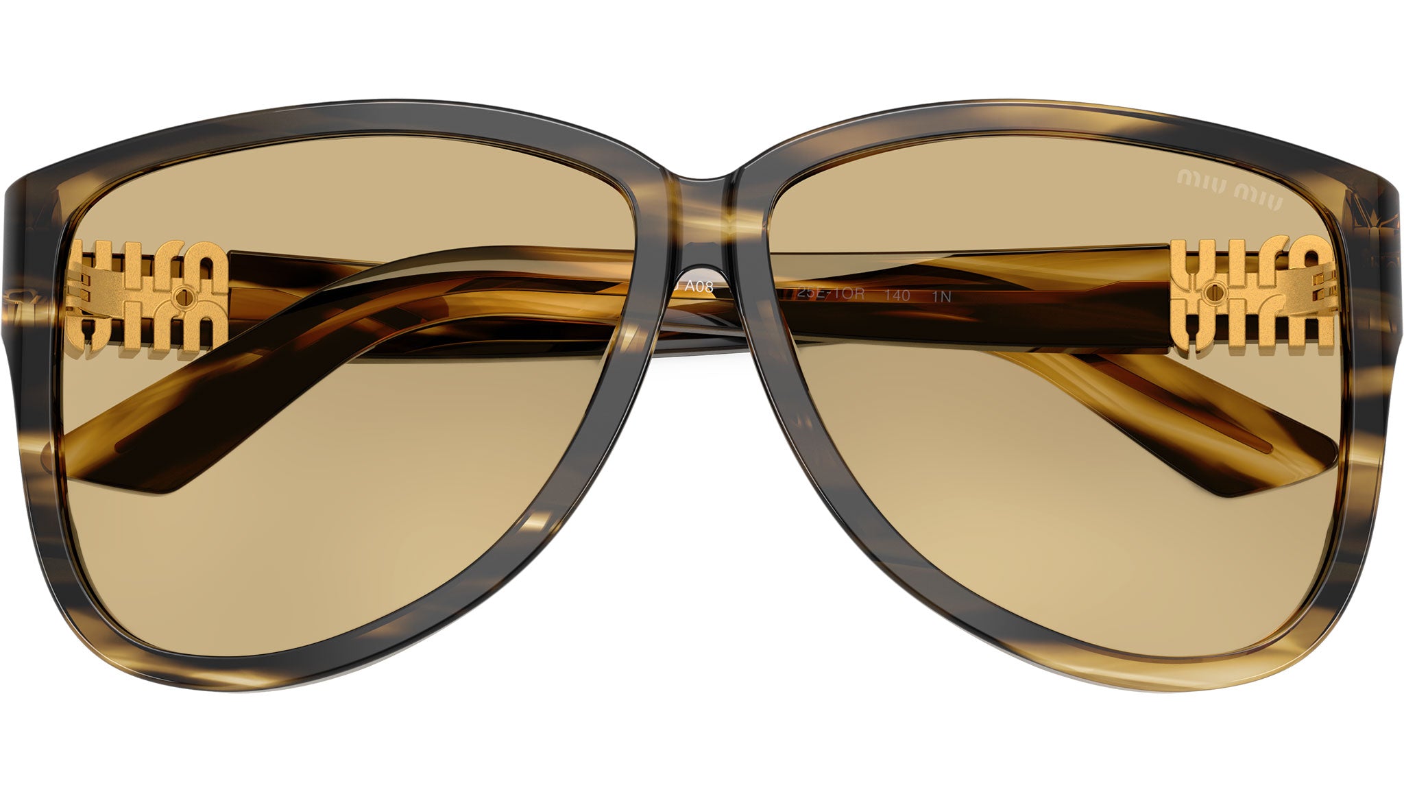 Occhiali da sole Miu Miu MU A08S 25E1OR donna con montatura aviatore in acetato loden rigato e lenti in bio poliammide color giallo. Vestibilità a ponte alto. Linea: Main Collection. Codice modello: 0MU A08S. Codice colore: 25E1OR. Made in Italy. Rivenditore autorizzato Miu Miu online. Gli occhiali vengono consegnati con custodia e accessori originali e sono coperti dalla garanzia ufficiale di 12 mesi del produttore.