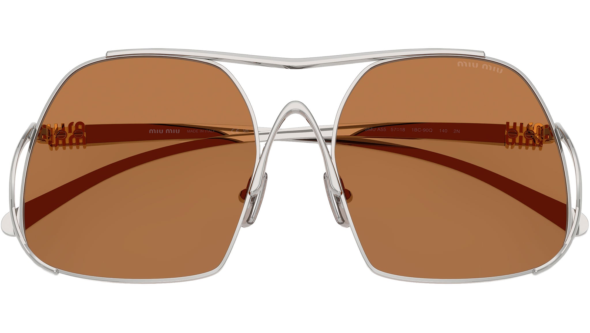 Occhiali da sole Miu Miu MU A55S 1BC90Q donna con montatura quadrata in acciaio argento e lenti in bio poliammide color marrone. Naselli regolabili. Linea: Fashion Show. Codice modello: 0MU A55S. Codice colore: 1BC90Q. Made in Italy. Rivenditore autorizzato Miu Miu online. Gli occhiali vengono consegnati con custodia e accessori originali e sono coperti dalla garanzia ufficiale di 12 mesi del produttore.