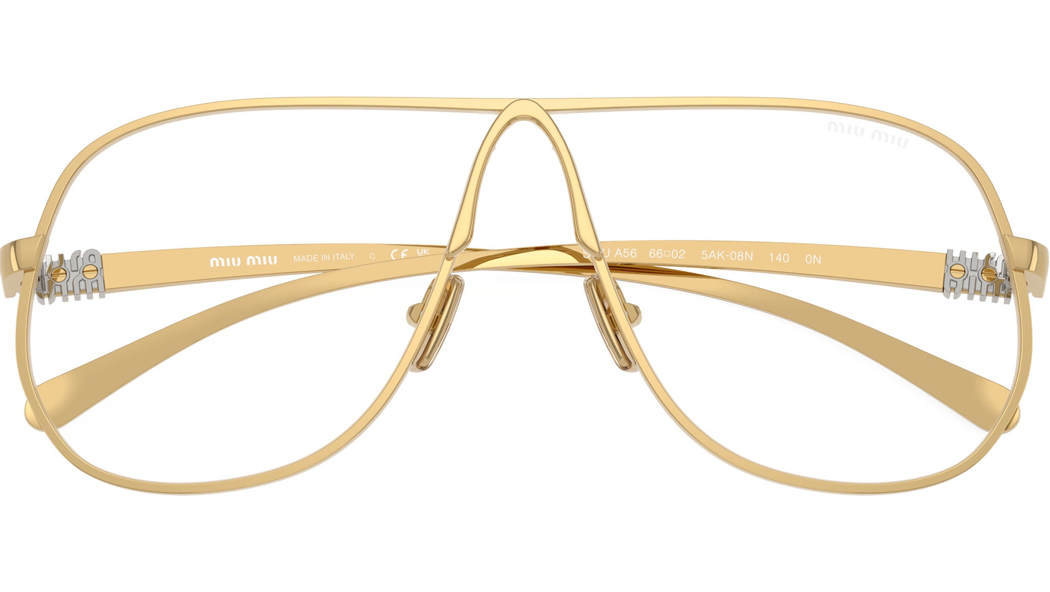 Occhiali da sole Miu Miu MU A56S 5AK08N donna con montatura aviatore in metallo oro e lenti in bio poliammide color blu viola chiaro. Naselli regolabili. Linea: Main Collection. Codice modello: 0MU A56S. Codice colore: 5AK08N. Made in Italy. Rivenditore autorizzato Miu Miu online. Gli occhiali vengono consegnati con custodia e accessori originali e sono coperti dalla garanzia ufficiale di 12 mesi del produttore.