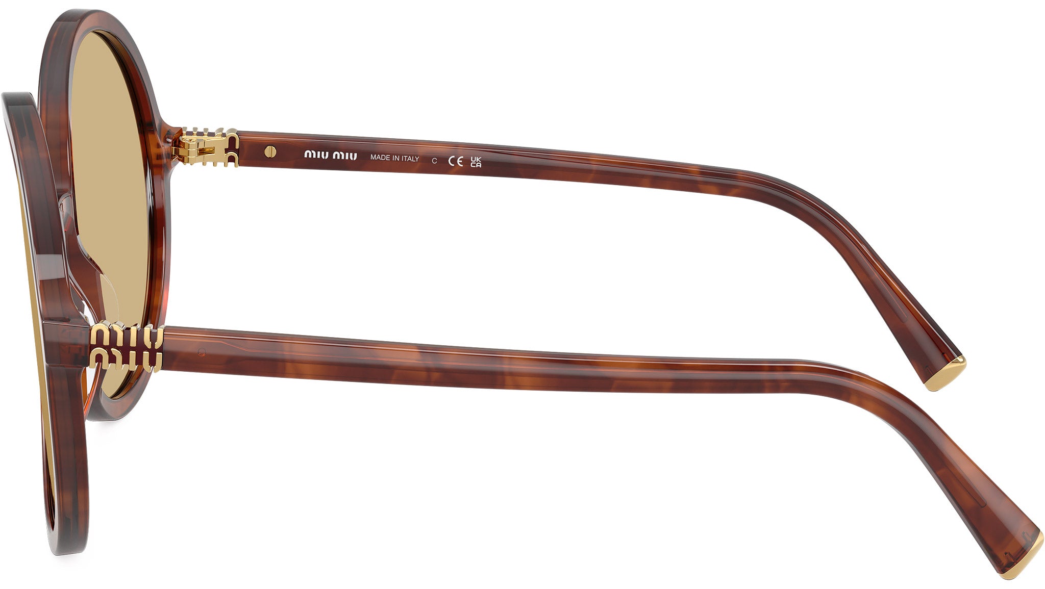Occhiali da sole Miu Miu MU B02S 26E10R donna con montatura rotonda in acetato tabacco striato e lenti in bio poliammide color giallo. Vestibilità a ponte alto. Linea: Main Collection. Codice modello: 0MU B02S. Codice colore: 26E10R. Made in Italy. Rivenditore autorizzato Miu Miu online. Gli occhiali vengono consegnati con custodia e accessori originali e sono coperti dalla garanzia ufficiale di 12 mesi del produttore.