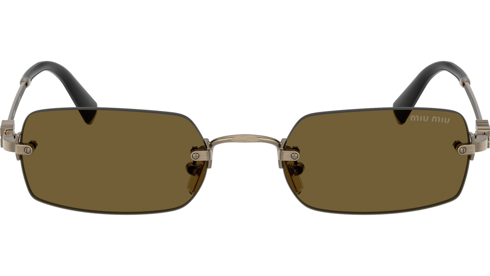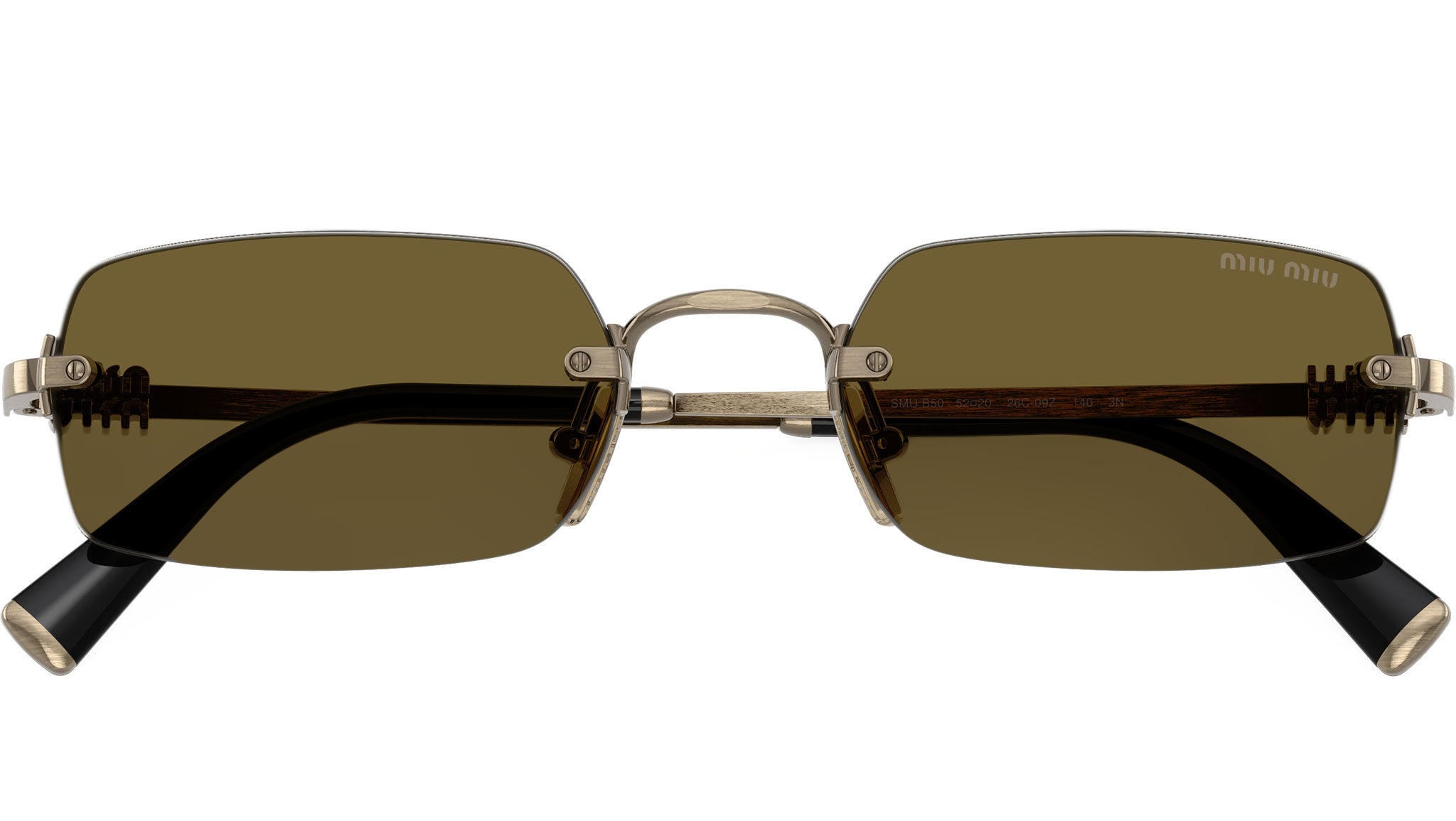 Occhiali da sole Miu Miu MU B50S 26C09Z donna con montatura rettangolare in metallo oro antico e lenti in bio poliammide color marrone scuro. Naselli regolabili. Linea: Main Collection. Codice modello: 0MU B50S. Codice colore: 26C09Z. Made in Italy. Rivenditore autorizzato Miu Miu online. Gli occhiali vengono consegnati con custodia e accessori originali e sono coperti dalla garanzia ufficiale di 12 mesi del produttore.