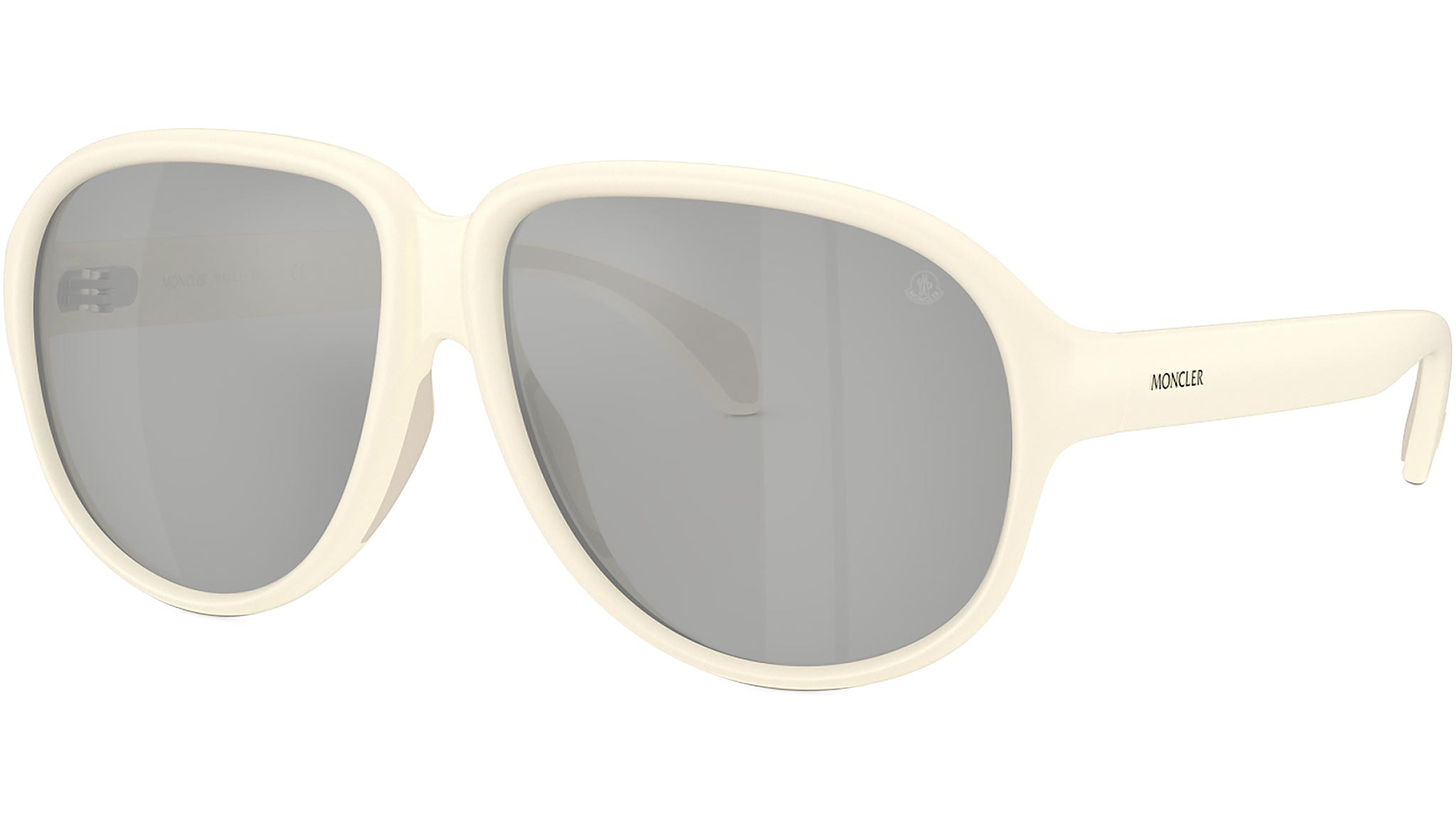Occhiali da sole Moncler ME8001 Halcyonne 50028V unisex con montatura aviatore in iniettato burro opaco e lenti in bio poliammide color argento a specchio chiaro. Vestibilità a ponte alto. Linea: Sport. Codice modello: 0ME8001. Codice colore: 50028V. Made in Italy. Rivenditore autorizzato Moncler online. Gli occhiali vengono consegnati con custodia e accessori originali e sono coperti dalla garanzia ufficiale di 12 mesi del produttore.