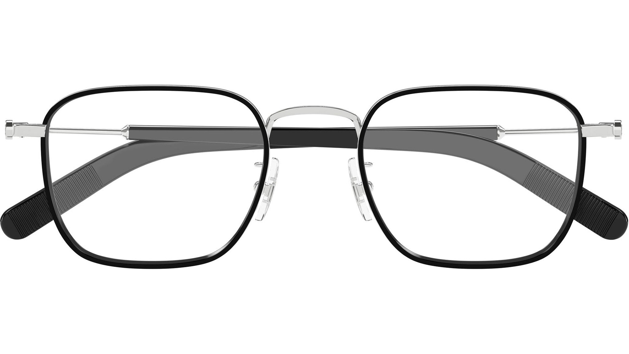 Occhiali da vista Montblanc MB0424O 001 uomo con montatura rettangolare in metallo argento lucido / cerchio windsor nero lucido e lenti demo. Linea: Snowcap. Codice modello: MB0424O. Codice colore: 001. Made in Japan. Rivenditore autorizzato Montblanc online. Gli occhiali vengono consegnati con custodia e accessori originali e sono coperti dalla garanzia ufficiale di 12 mesi del produttore.