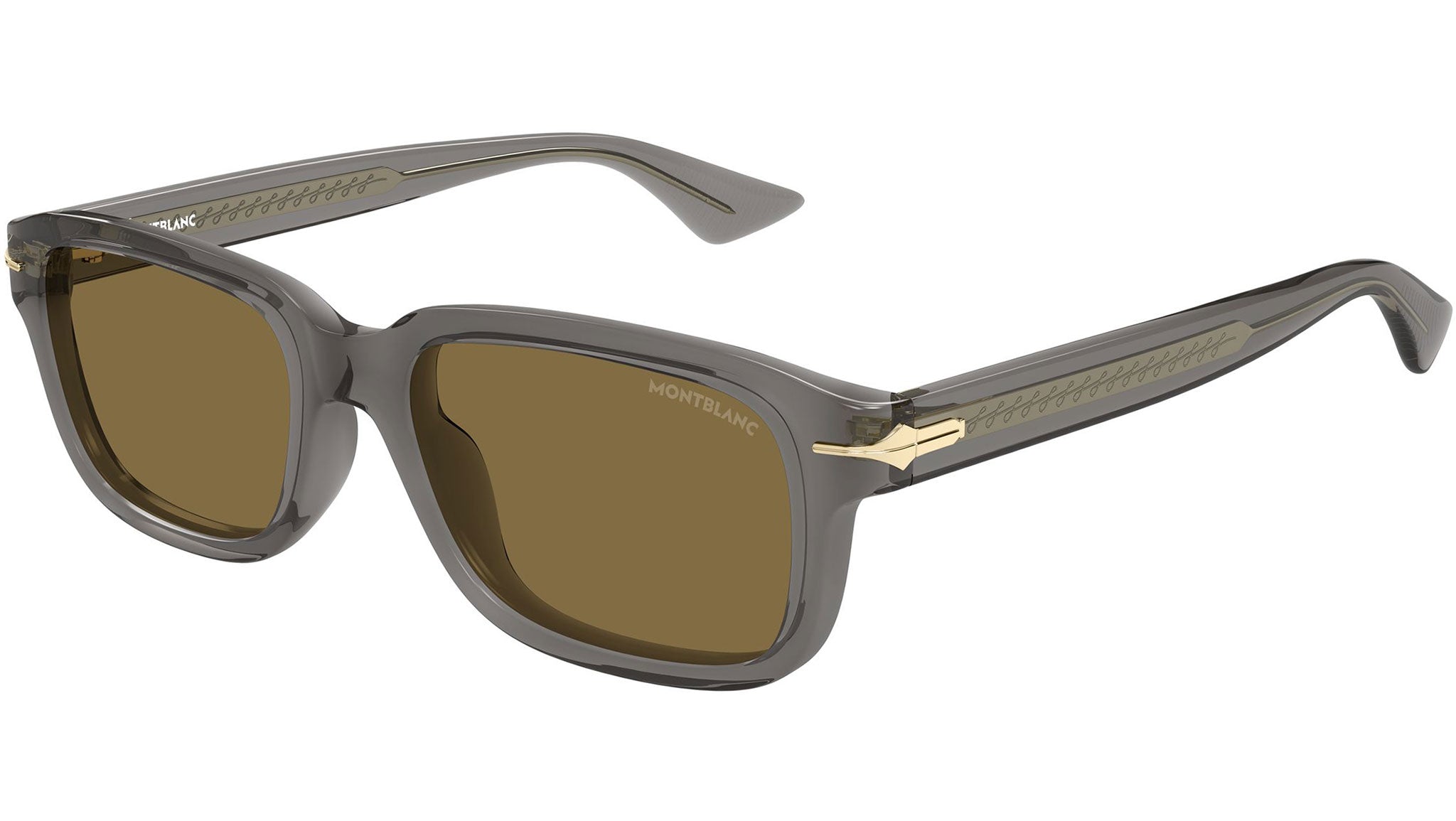 Occhiali da sole Montblanc MB0436S 003 uomo con montatura rettangolare in acetato riciclato grigio trasparente lucido e lenti marrone tinta unita. Linea: Nib. Codice modello: MB0436S. Codice colore: 003. Made in Japan. Rivenditore autorizzato Montblanc online. Gli occhiali vengono consegnati con custodia e accessori originali e sono coperti dalla garanzia ufficiale di 12 mesi del produttore.