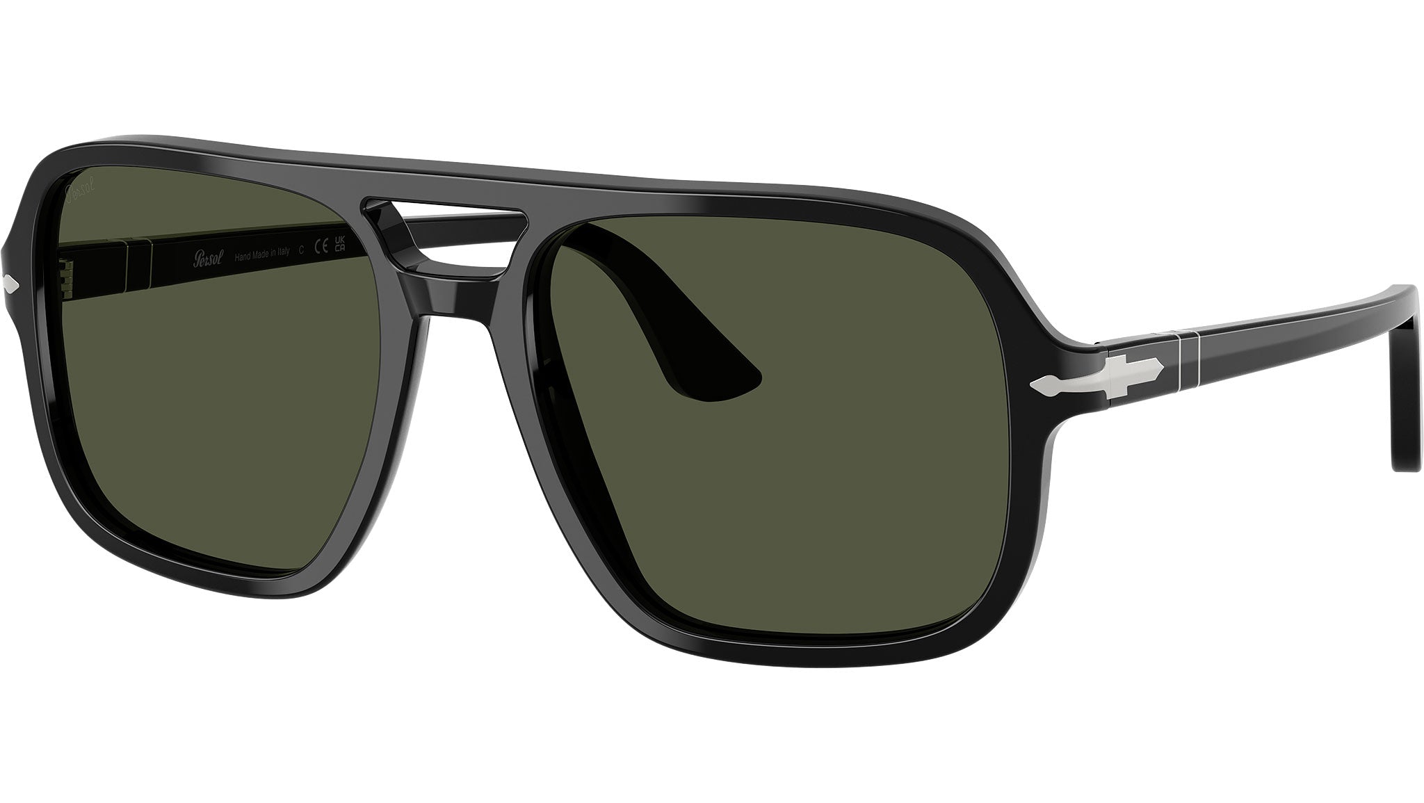 Occhiali da sole Persol uomo modello PO3328S 95/31 con montatura navigator in acetato nero e lenti in cristallo verde base 6. Vestibilità a ponte alto. Linea: Officina. Codice Brand: 0PO3328S. Codice colore: 95/31. Rivenditore autorizzato online Persol Eyewear. Ogni prodotto Persol viene consegnato con astuccio originale e accessori ed è coperto da garanzia del produttore di 12 mesi.