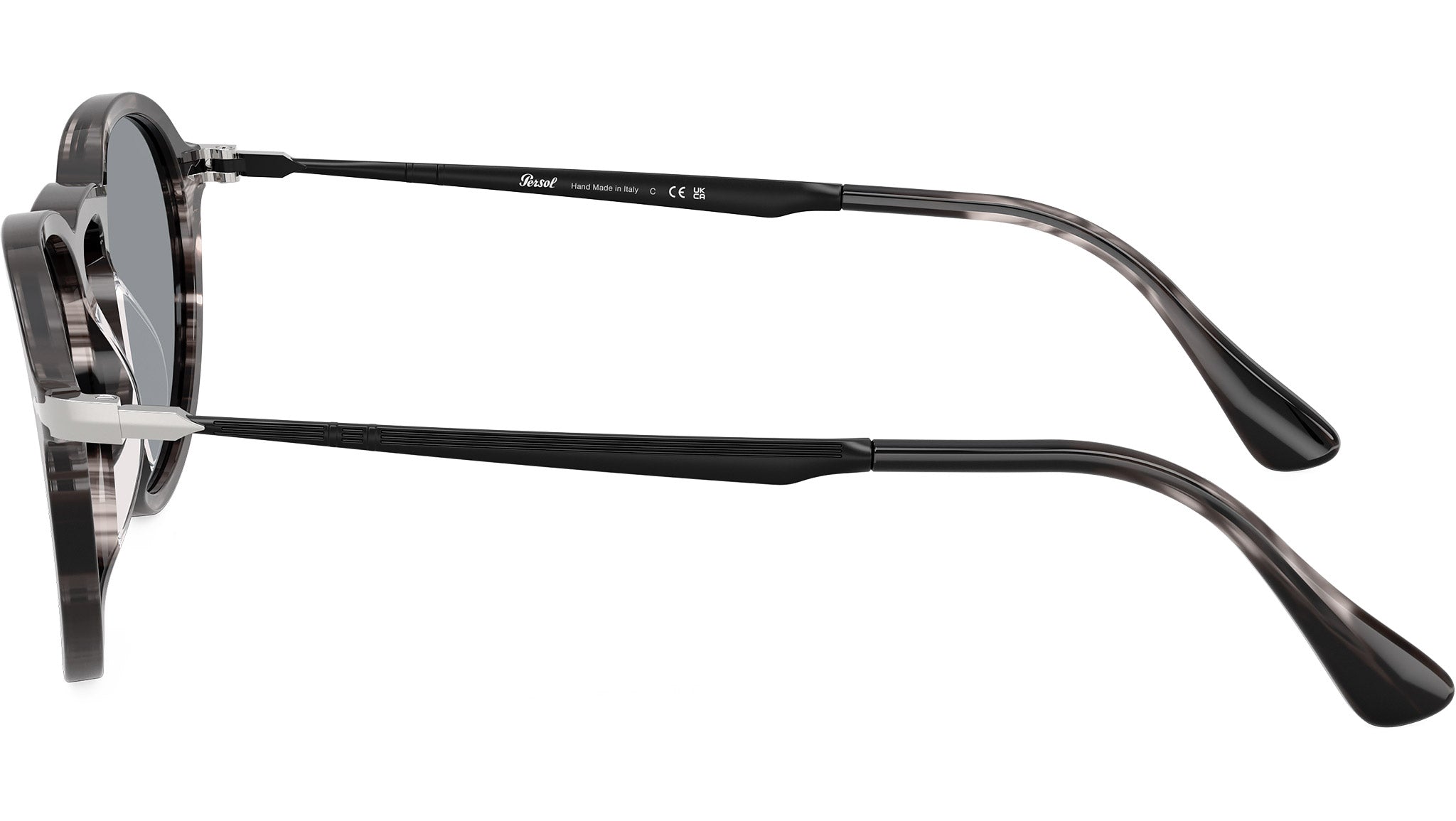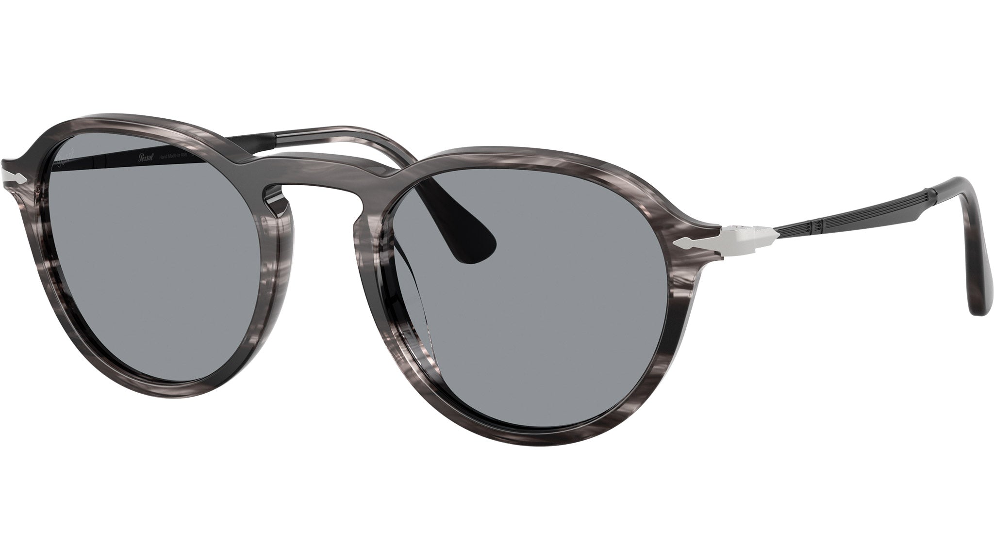 Occhiali da sole Persol unisex modello PO3383S 1238R5 con montatura panthos in acetato nero striato e grigio e lenti in cristallo blu base 4.25. Vestibilità a ponte alto. Linea: Galleria. Codice Brand: 0PO3383S. Codice colore: 1238R5. Rivenditore autorizzato online Persol Eyewear. Ogni prodotto Persol viene consegnato con astuccio originale e accessori ed è coperto da garanzia del produttore di 12 mesi.