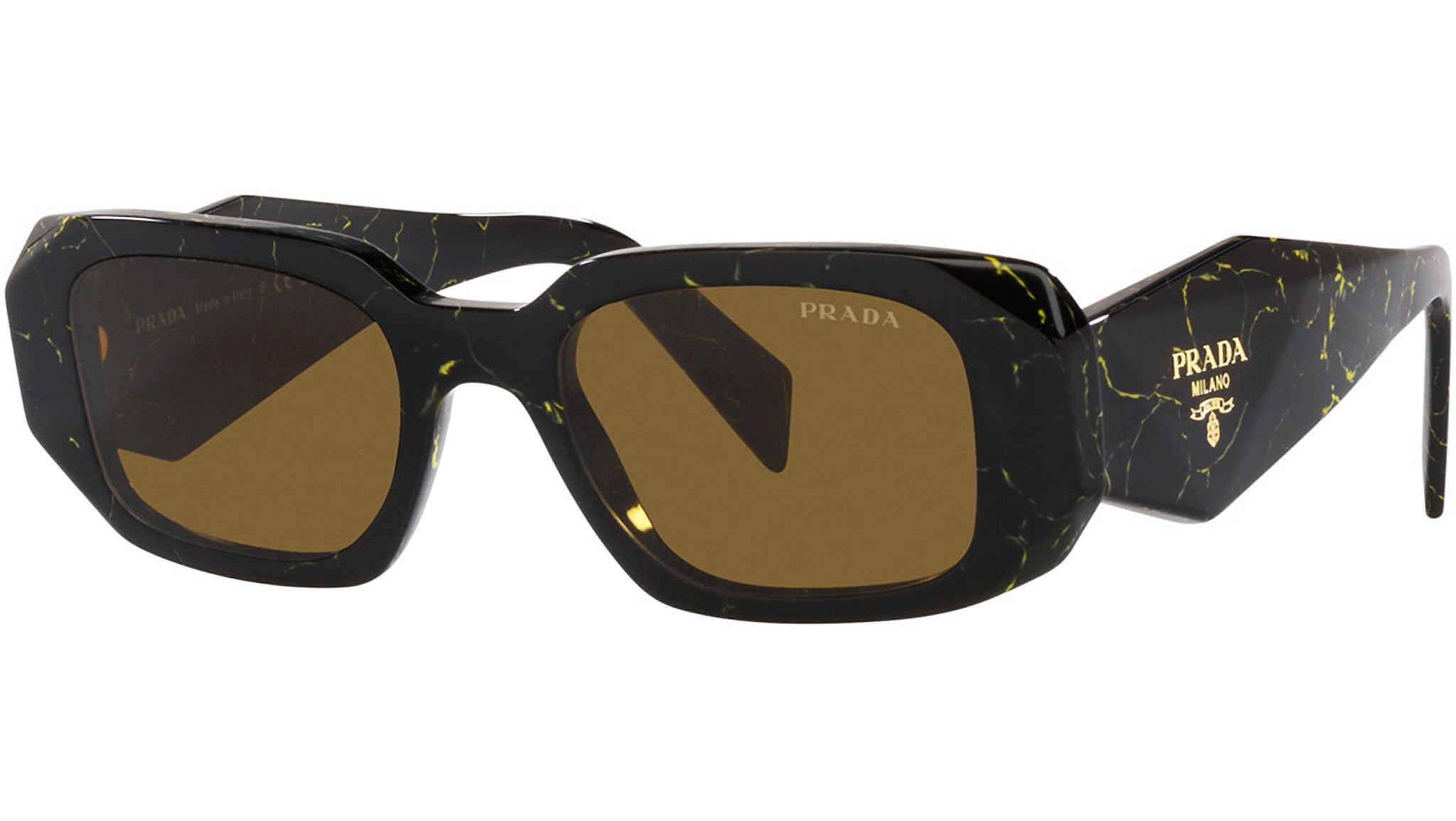 Occhiali da sole Prada PR 17WS 19D01T donna con montatura rettangolare in acetato nero / marmorizzato giallo e lenti in poliammide color marrone scuro. Fit universale. Linea: Catwalk. Codice modello: PR17WS. Codice colore: 19D01T. Made in Italy. Rivenditore autorizzato Prada online. Gli occhiali vengono consegnati con custodia e accessori originali e sono coperti dalla garanzia ufficiale di 12 mesi del produttore.