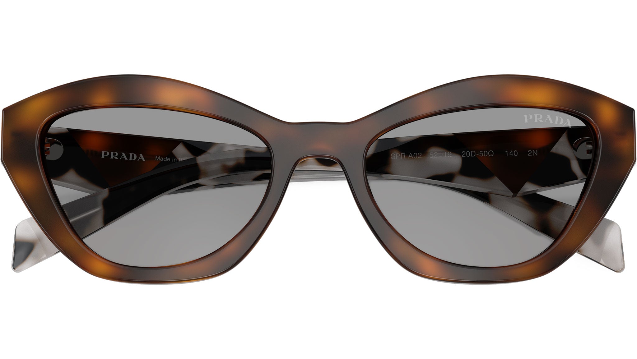 Occhiali da sole Prada PR A02S 20D50Q donna con montatura butterfly in acetato tartaruga ginepro e lenti in bio poliammide color grigio. Vestibilità a ponte alto. Linea: Catwalk. Codice modello: PRA02S. Codice colore: 20D50Q. Made in Italy. Rivenditore autorizzato Prada online. Gli occhiali vengono consegnati con custodia e accessori originali e sono coperti dalla garanzia ufficiale di 12 mesi del produttore.