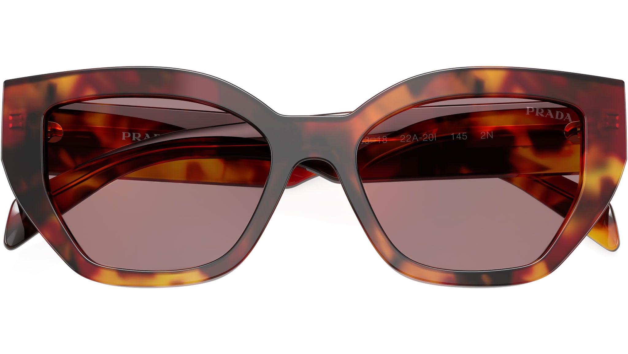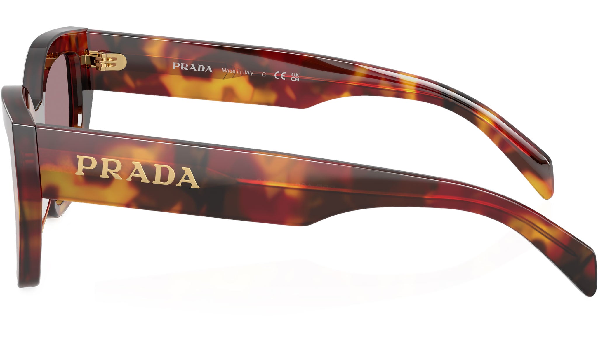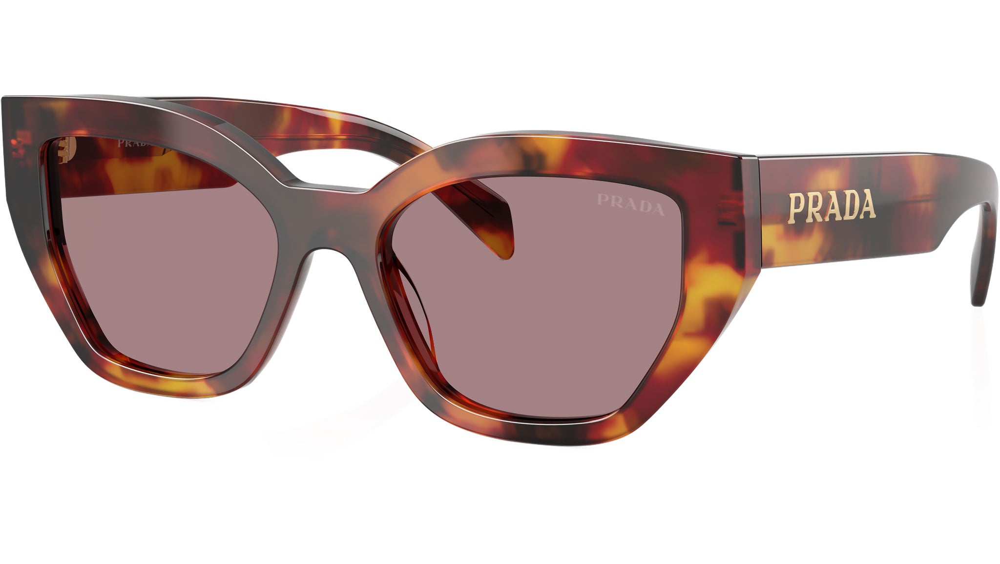 Occhiali da sole Prada PR A09S 22A20I donna con montatura butterfly in acetato tartaruga papavero e lenti in bio poliammide color viola chiaro sfumato marrone. Vestibilità a ponte alto. Linea: Signature. Codice modello: PRA09S. Codice colore: 22A20I. Made in Italy. Rivenditore autorizzato Prada online. Gli occhiali vengono consegnati con custodia e accessori originali e sono coperti dalla garanzia ufficiale di 12 mesi del produttore.