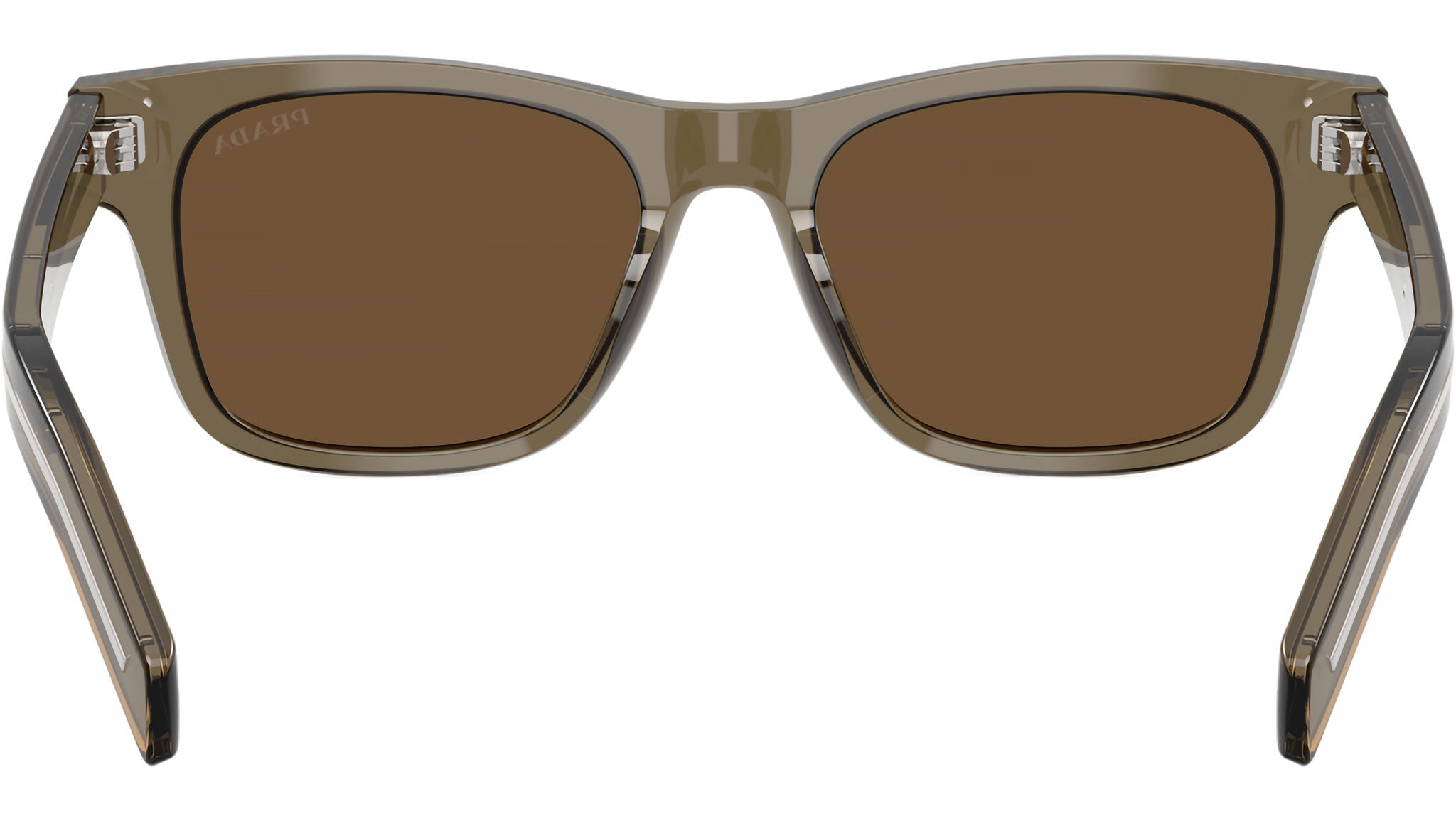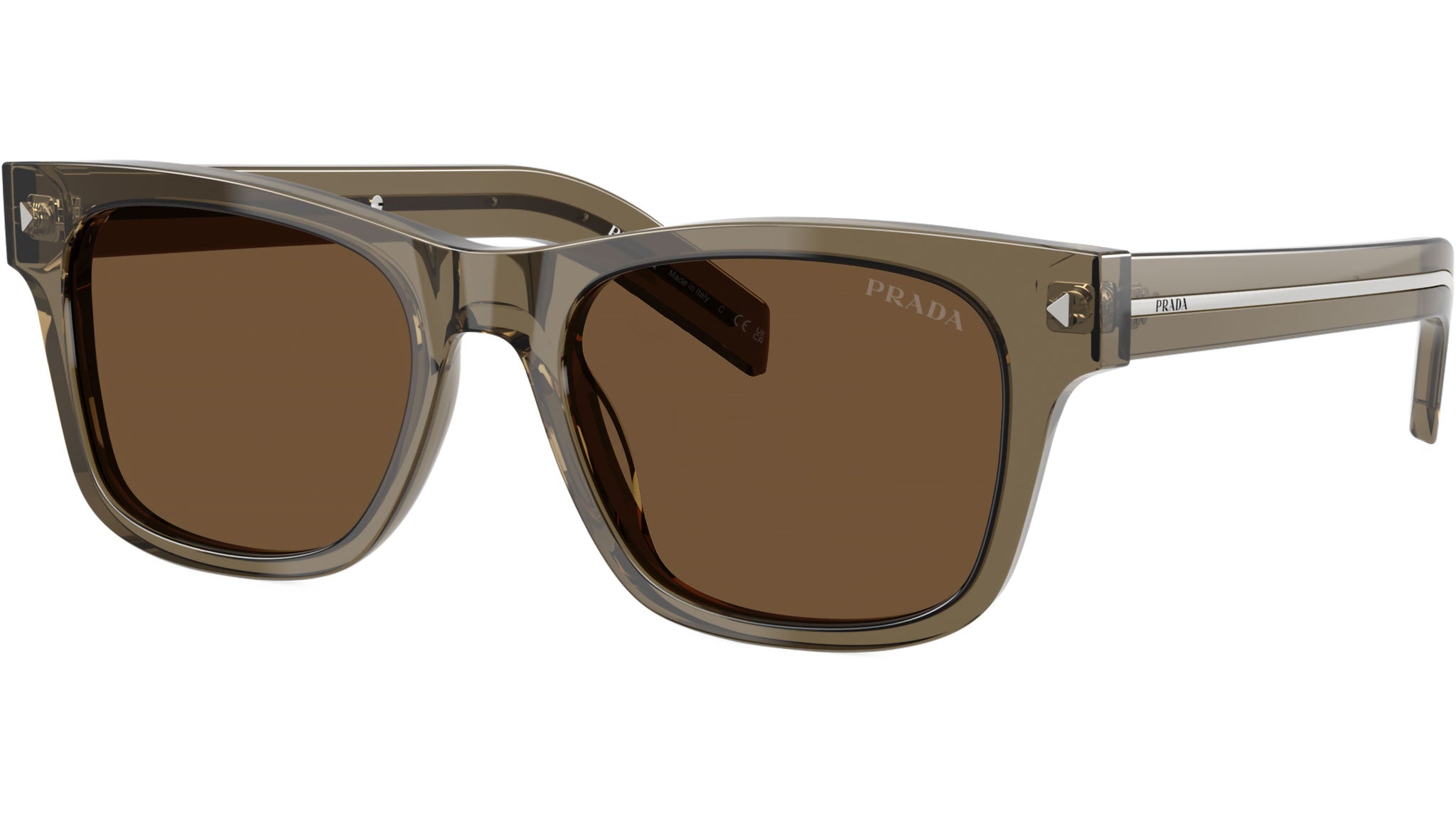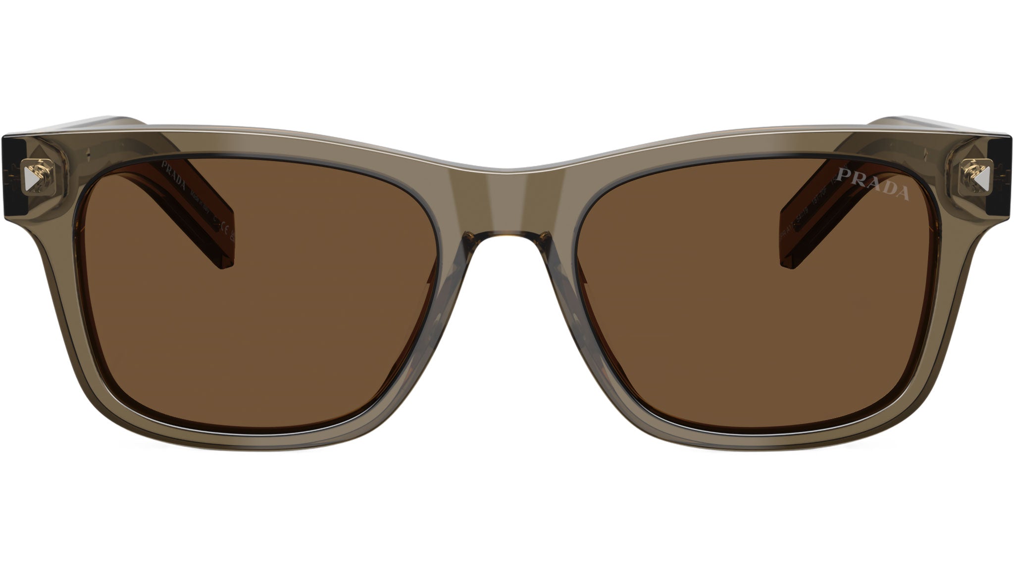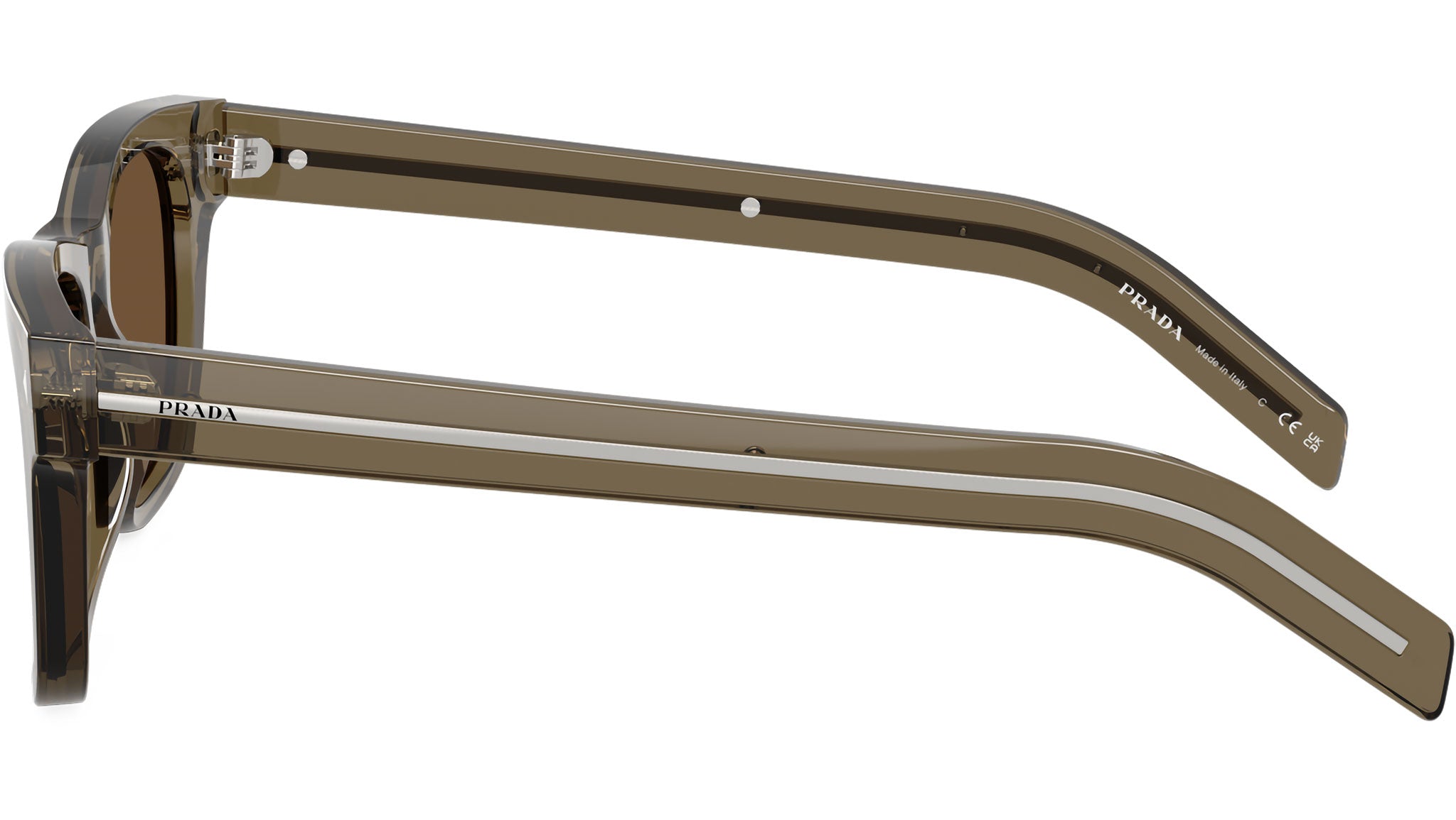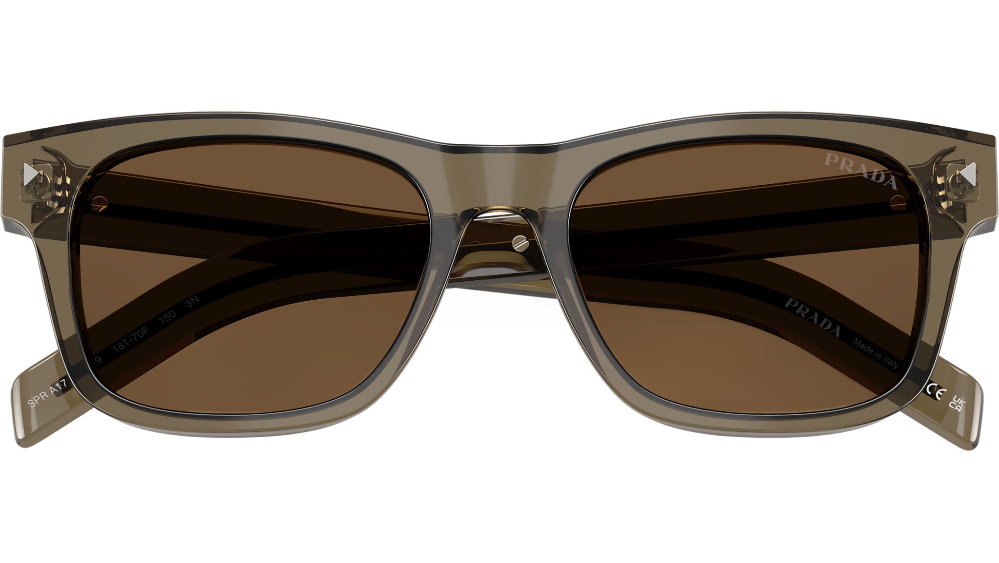 Occhiali da sole Prada PR A17S 18T70F uomo con montatura rettangolare in acetato terra trasparente e lenti in cristallo color marrone scuro. Vestibilità a ponte alto. Linea: Signature. Codice modello: PRA17S. Codice colore: 18T70F. Made in Italy. Rivenditore autorizzato Prada online. Gli occhiali vengono consegnati con custodia e accessori originali e sono coperti dalla garanzia ufficiale di 12 mesi del produttore.