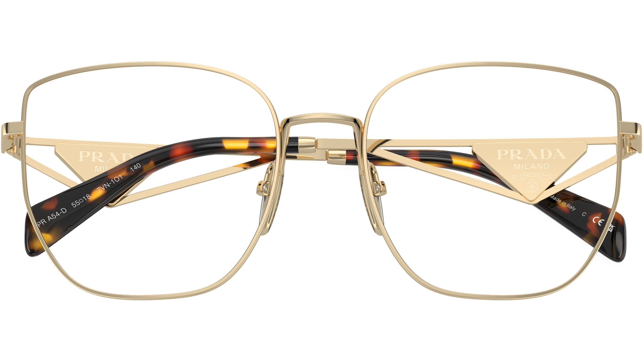 Occhiali da vista Prada PR A54VD ZVN1O1 donna con montatura butterfly in acciaio oro pallido e lenti demo. Vestibilità a ponte basso. Linea: Catwalk. Codice modello: PRA54VD. Codice colore: ZVN1O1. Made in Italy. Rivenditore autorizzato Prada online. Gli occhiali vengono consegnati con custodia e accessori originali e sono coperti dalla garanzia ufficiale di 12 mesi del produttore.
