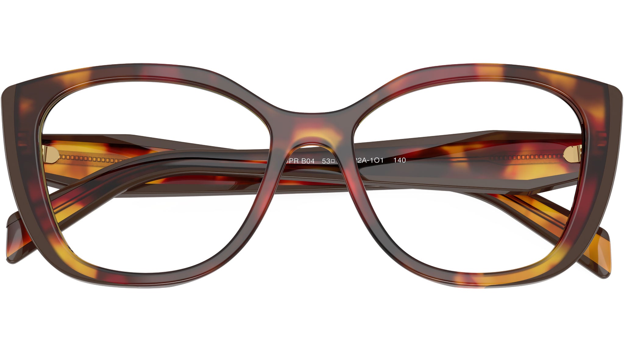Occhiali da vista Prada PR B04V 22A1O1 donna con montatura cat eye in acetato tartaruga papavero / bordeaux e lenti demo. Vestibilità a ponte alto. Linea: Signature. Codice modello: PRB04V. Codice colore: 22A1O1. Made in Italy. Rivenditore autorizzato Prada online. Gli occhiali vengono consegnati con custodia e accessori originali e sono coperti dalla garanzia ufficiale di 12 mesi del produttore.