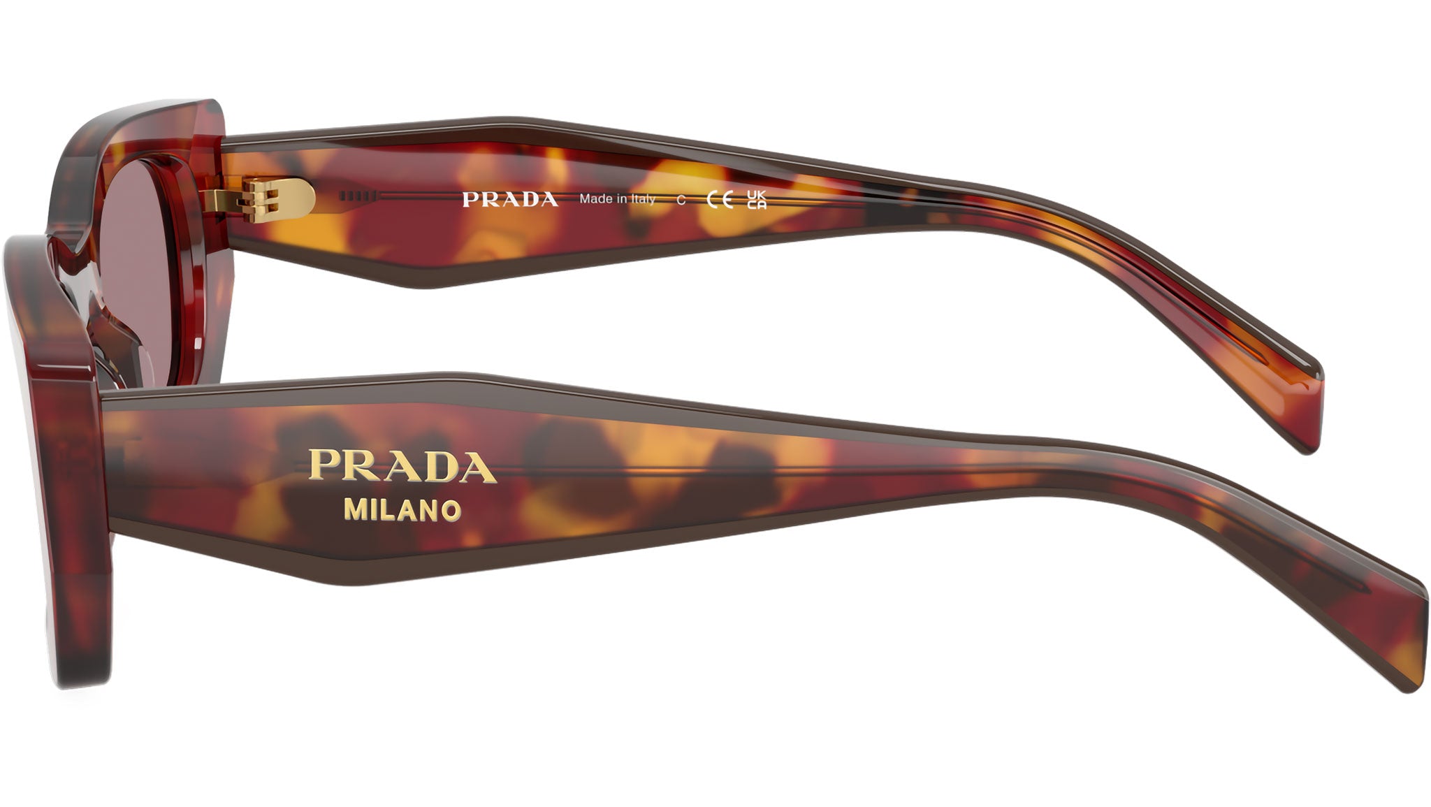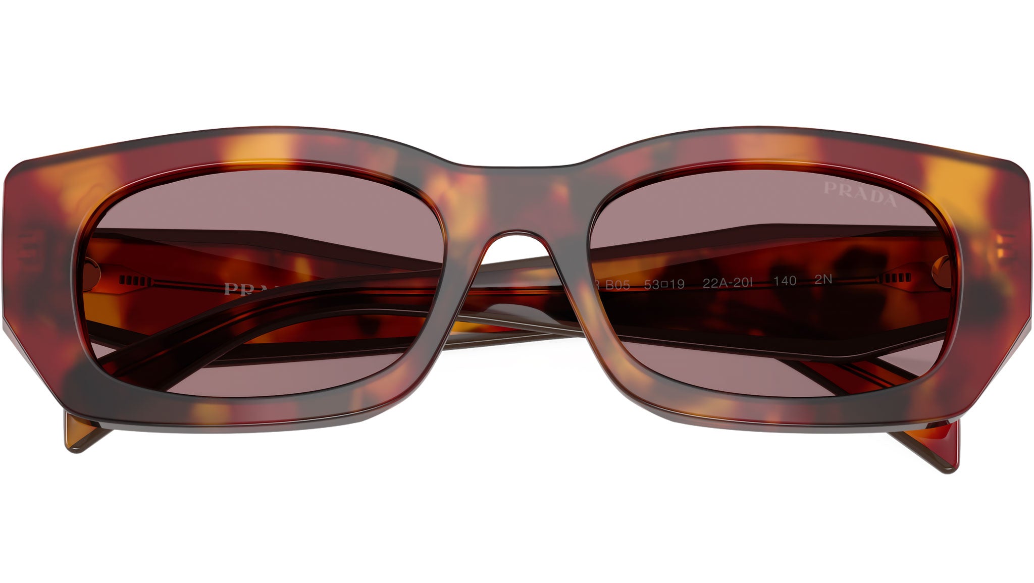 Occhiali da sole Prada PR B05S 22A20I donna con montatura d-frame in acetato tartaruga papavero e lenti in bio poliammide color viola chiaro sfumato marrone. Vestibilità a ponte alto. Linea: Heritage. Codice modello: PRB05S. Codice colore: 22A20I. Made in Italy. Rivenditore autorizzato Prada online. Gli occhiali vengono consegnati con custodia e accessori originali e sono coperti dalla garanzia ufficiale di 12 mesi del produttore.