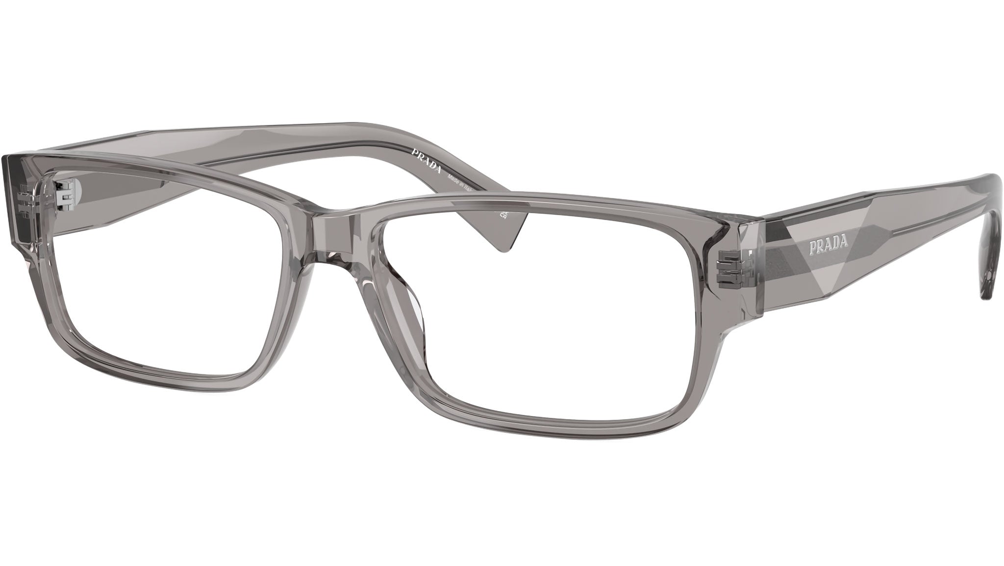Occhiali da vista Prada PR B09V 16Z1O1 uomo con montatura rettangolare in acetato grigio trasparente e lenti demo. Vestibilità a ponte alto. Linea: Catwalk. Codice modello: PRB09V. Codice colore: 16Z1O1. Made in Italy. Rivenditore autorizzato Prada online. Gli occhiali vengono consegnati con custodia e accessori originali e sono coperti dalla garanzia ufficiale di 12 mesi del produttore.