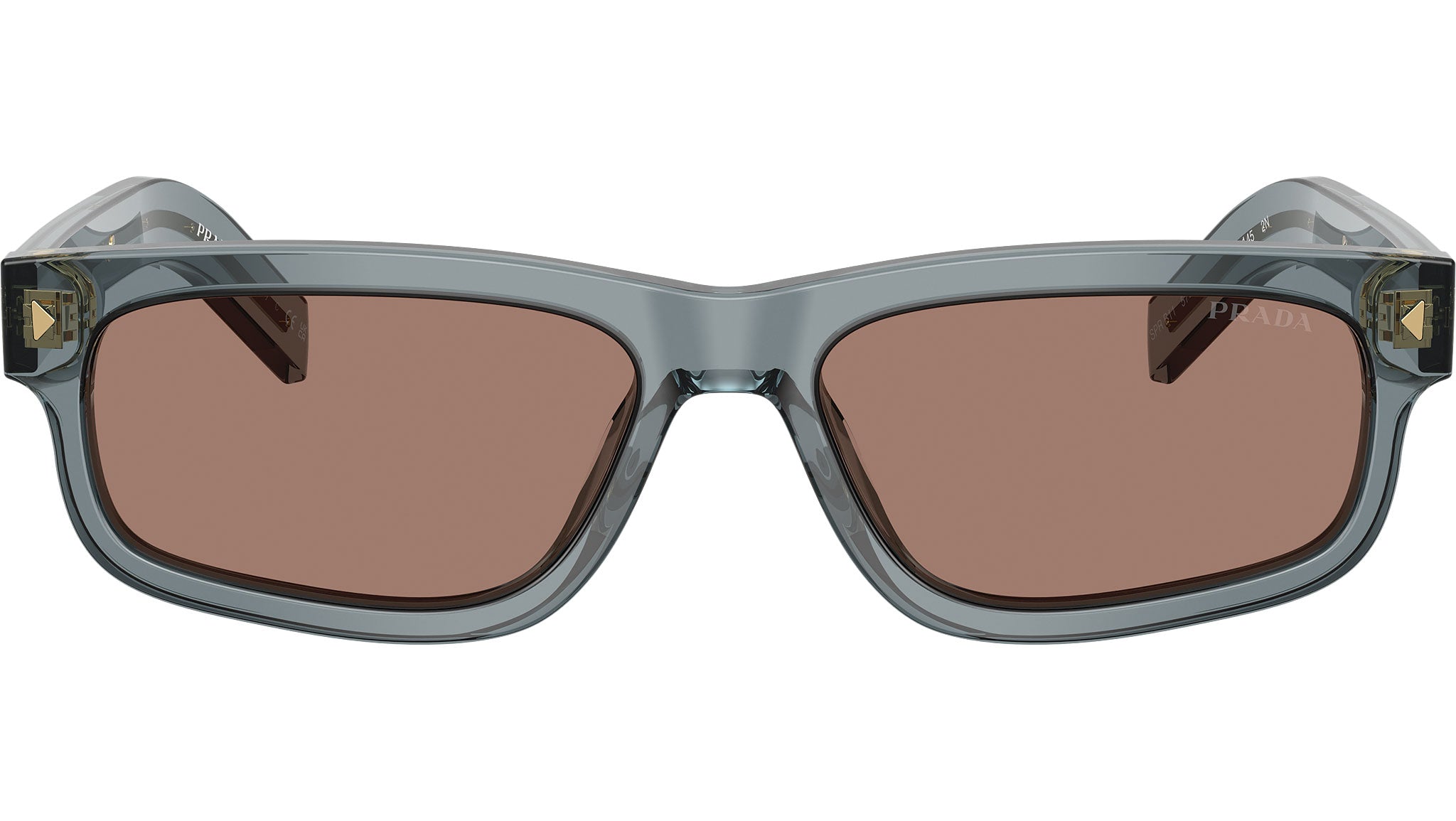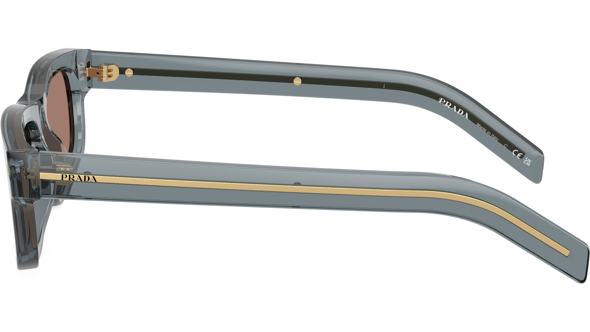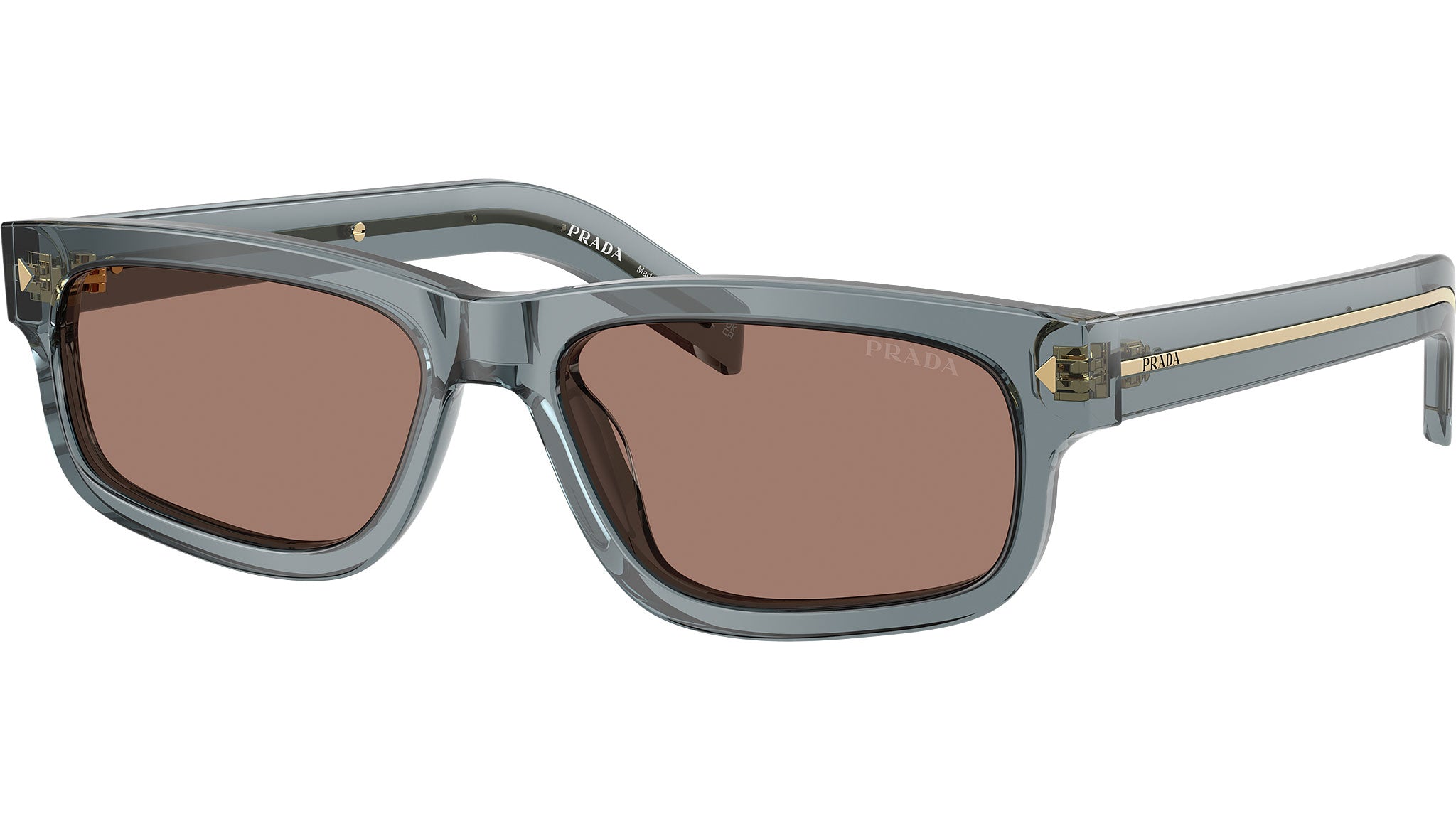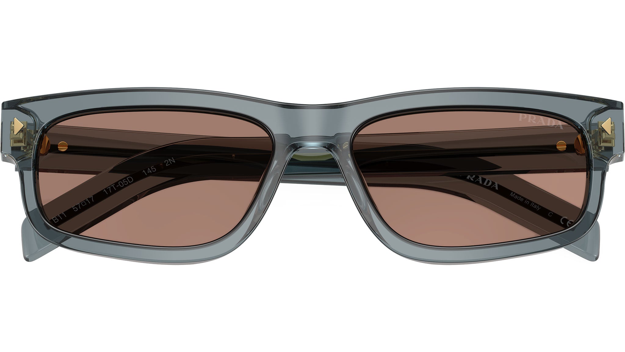 Occhiali da sole Prada PR B11S 17T05D uomo con montatura rettangolare in acetato oceano trasparente e lenti in cristallo color marrone a specchio interno grigio. Vestibilità a ponte alto. Linea: Signature. Codice modello: PRB11S. Codice colore: 17T05D. Made in Italy. Rivenditore autorizzato Prada online. Gli occhiali vengono consegnati con custodia e accessori originali e sono coperti dalla garanzia ufficiale di 12 mesi del produttore.