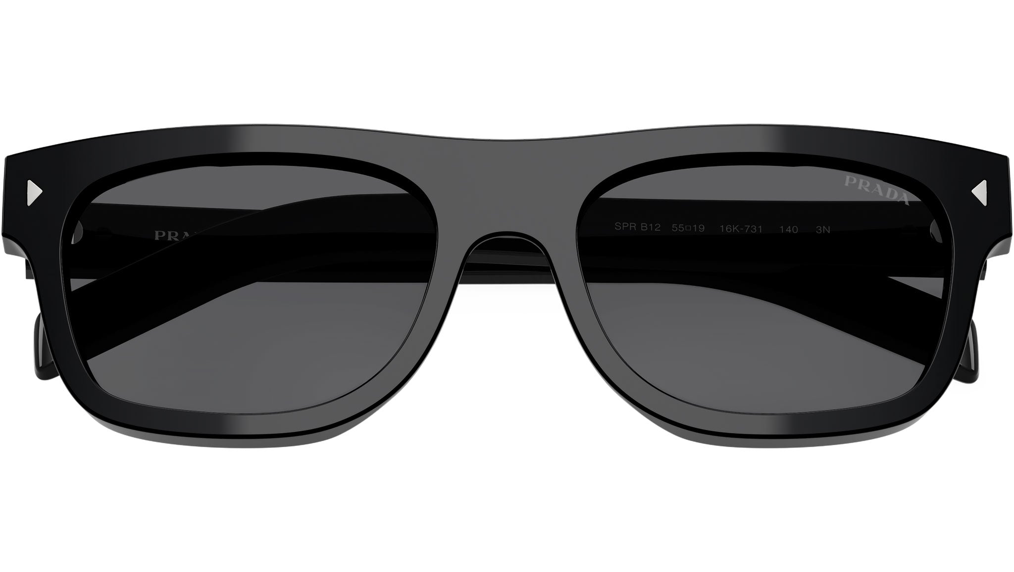 Occhiali da sole Prada PR B12S 16K731 uomo con montatura d-frame in acetato nero e lenti in cristallo color grigio scuro. Vestibilità a ponte alto. Linea: Signature. Codice modello: PRB12S. Codice colore: 16K731. Made in Italy. Rivenditore autorizzato Prada online. Gli occhiali vengono consegnati con custodia e accessori originali e sono coperti dalla garanzia ufficiale di 12 mesi del produttore.