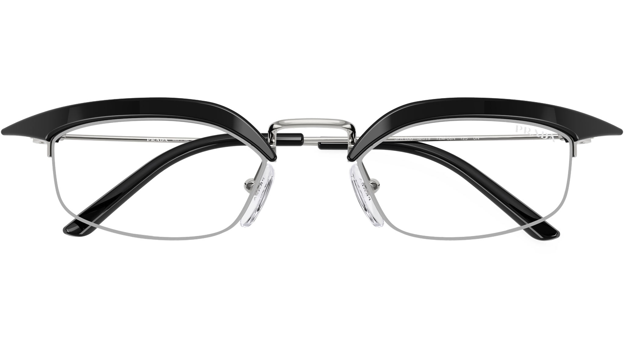 PR B50S TZM08N Gafas de sol rectangulares negras y plateadas