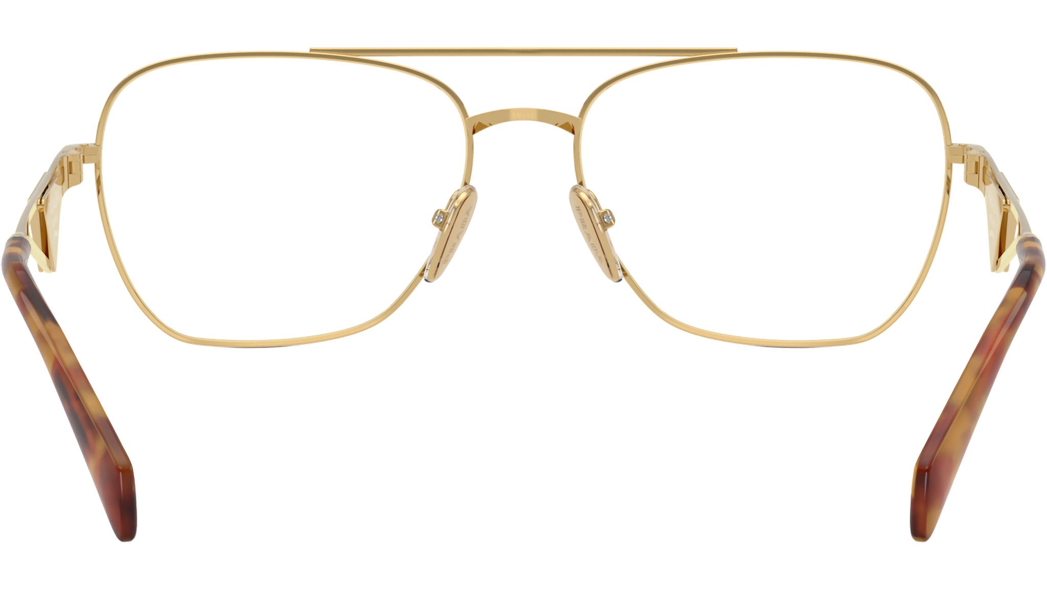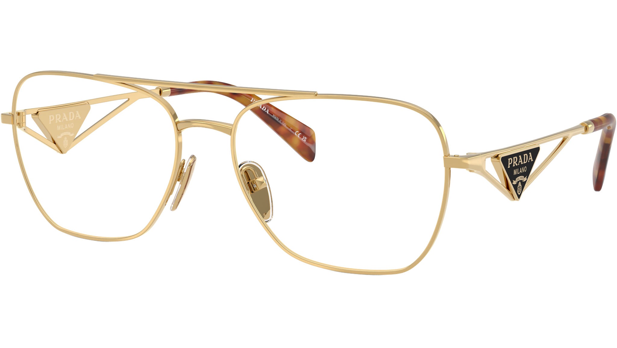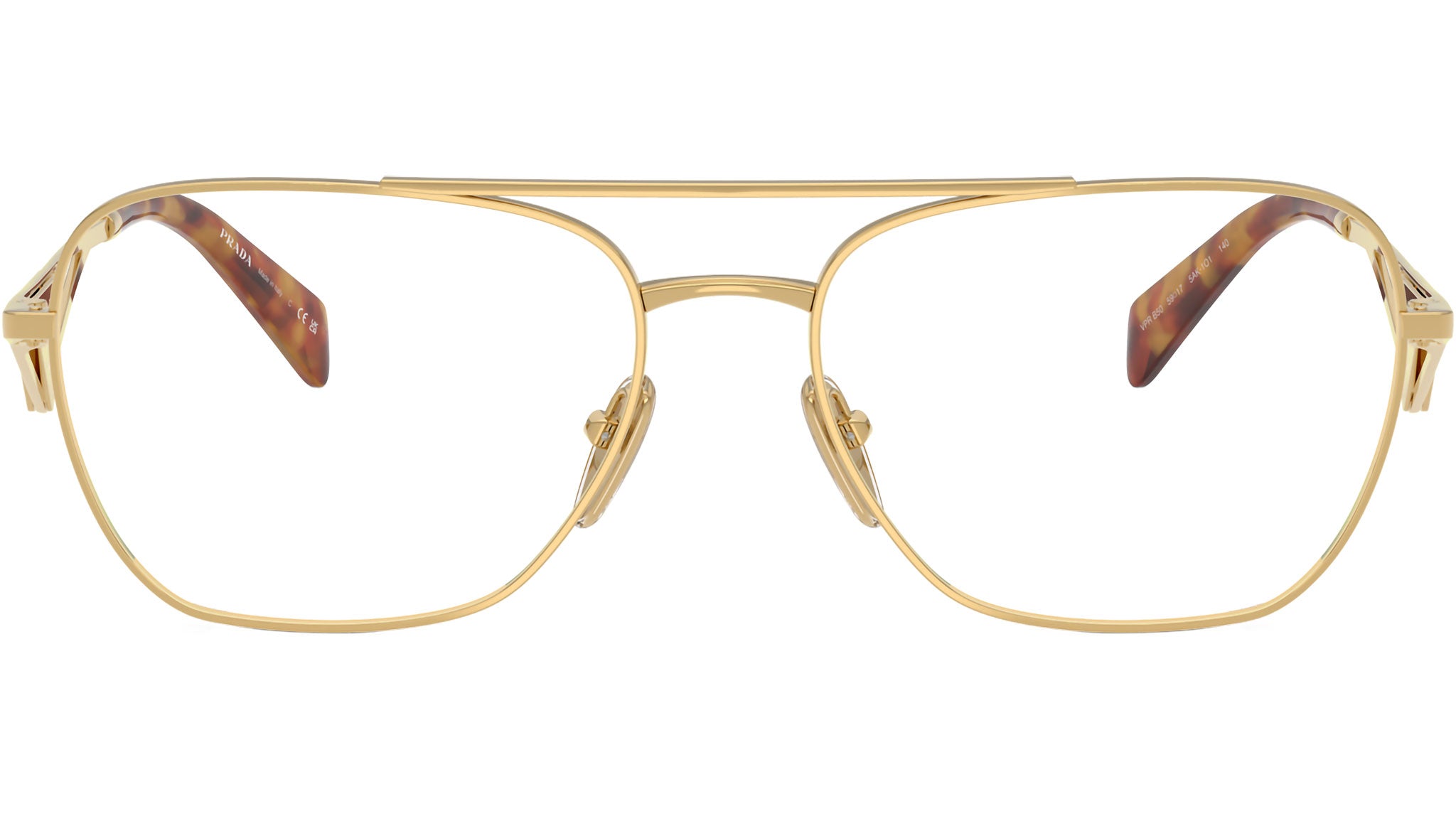 Occhiali da vista Prada PR B50V 5AK1O1 donna con montatura aviatore in acciaio oro e lenti demo. Naselli regolabili. Linea: Catwalk. Codice modello: PRB50V. Codice colore: 5AK1O1. Made in Italy. Rivenditore autorizzato Prada online. Gli occhiali vengono consegnati con custodia e accessori originali e sono coperti dalla garanzia ufficiale di 12 mesi del produttore.