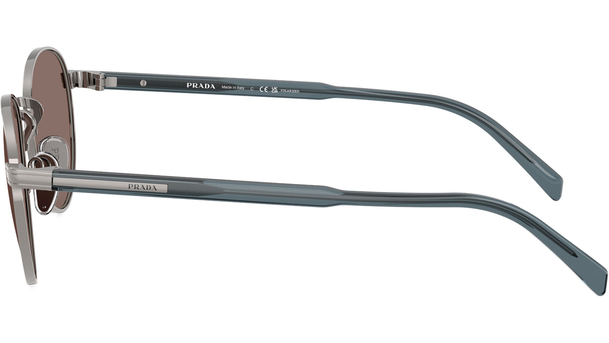 Occhiali da sole Prada PR B51S 5AV05C uomo con montatura ovale in metallo grigio piombo e lenti in policarbonato color bruciato polar. Naselli regolabili. Linea: Signature. Codice modello: PRB51S. Codice colore: 5AV05C. Made in Italy. Rivenditore autorizzato Prada online. Gli occhiali vengono consegnati con custodia e accessori originali e sono coperti dalla garanzia ufficiale di 12 mesi del produttore.