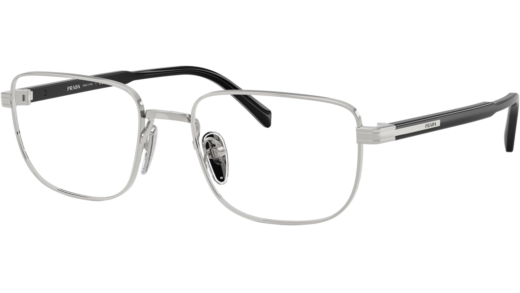 Occhiali da vista Prada PR B51V 1BC1O1 uomo con montatura rettangolare in alluminio argento e lenti demo. Naselli regolabili. Linea: Signature. Codice modello: PRB51V. Codice colore: 1BC1O1. Made in Italy. Rivenditore autorizzato Prada online. Gli occhiali vengono consegnati con custodia e accessori originali e sono coperti dalla garanzia ufficiale di 12 mesi del produttore.