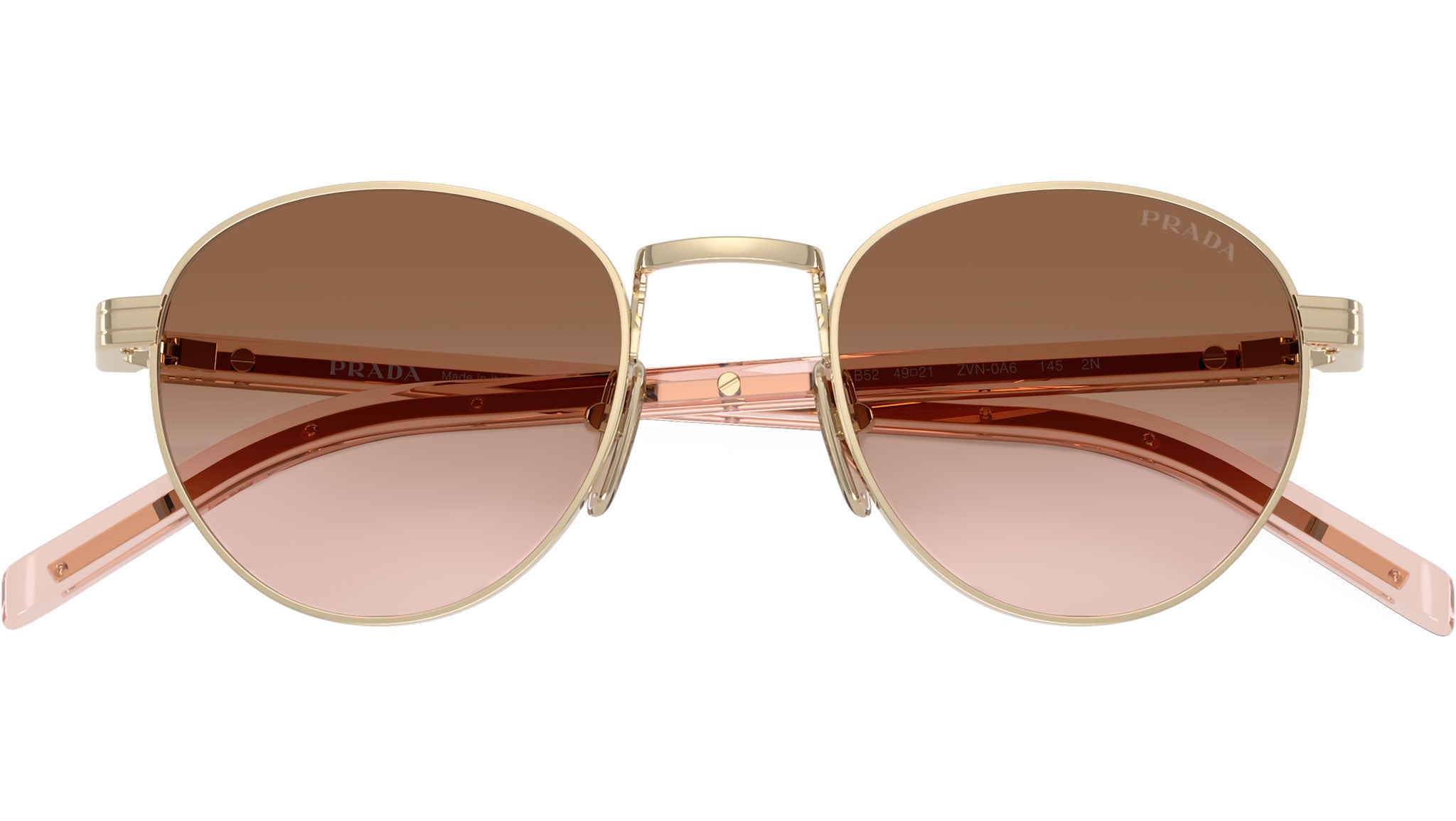 Occhiali da sole Prada PR B52S ZVN0A6 donna con montatura pantos in acciaio oro pallido e lenti in bio poliammide color gradiente marrone. Naselli regolabili. Linea: Signature. Codice modello: PRB52S. Codice colore: ZVN0A6. Made in Italy. Rivenditore autorizzato Prada online. Gli occhiali vengono consegnati con custodia e accessori originali e sono coperti dalla garanzia ufficiale di 12 mesi del produttore.