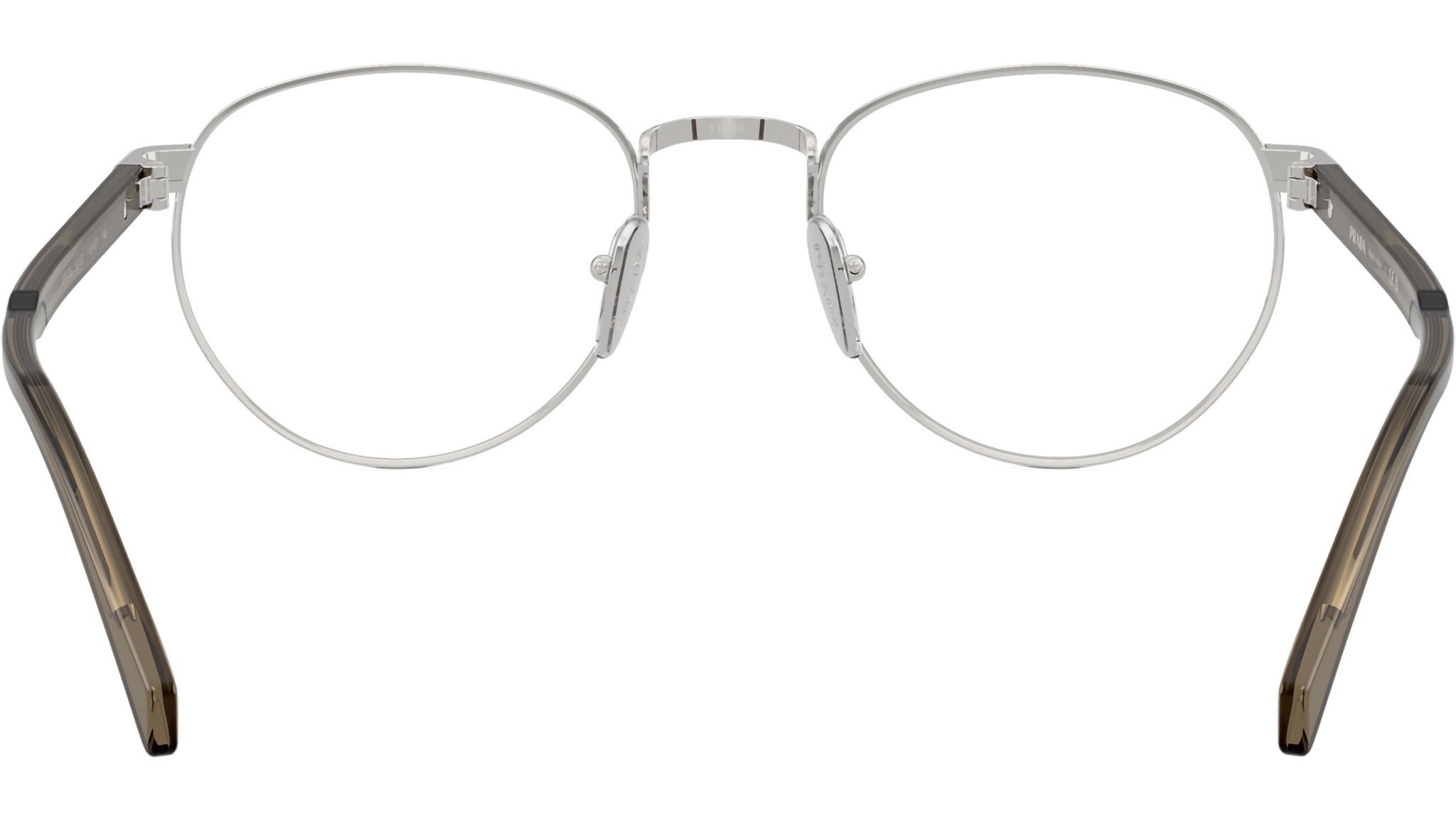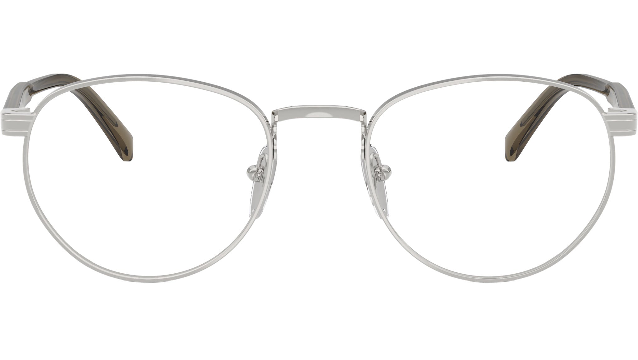 Occhiali da vista Prada PR B52V 11U1O1 uomo con montatura pantos in metallo argento e lenti demo. Naselli regolabili. Linea: Signature. Codice modello: PRB52V. Codice colore: 11U1O1. Made in Italy. Rivenditore autorizzato Prada online. Gli occhiali vengono consegnati con custodia e accessori originali e sono coperti dalla garanzia ufficiale di 12 mesi del produttore.