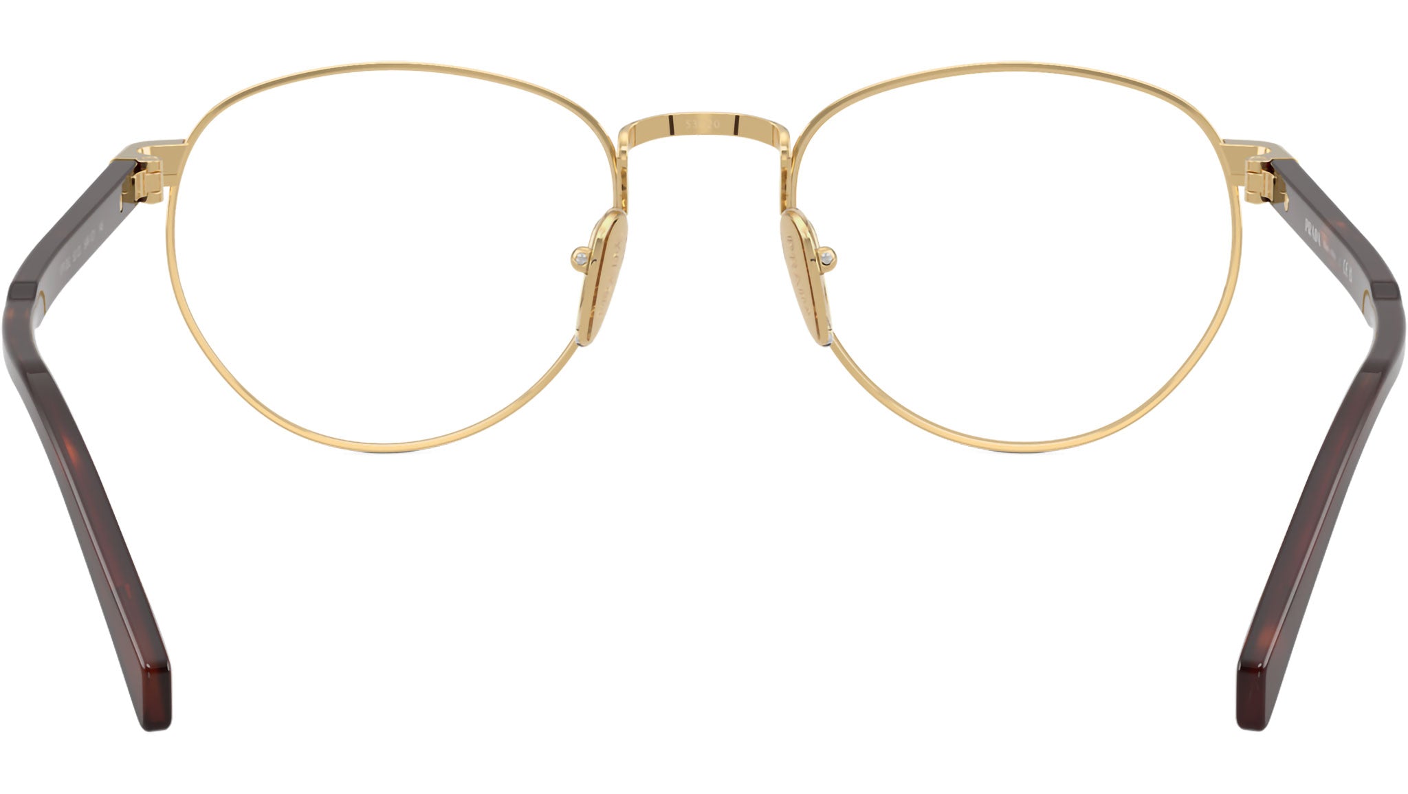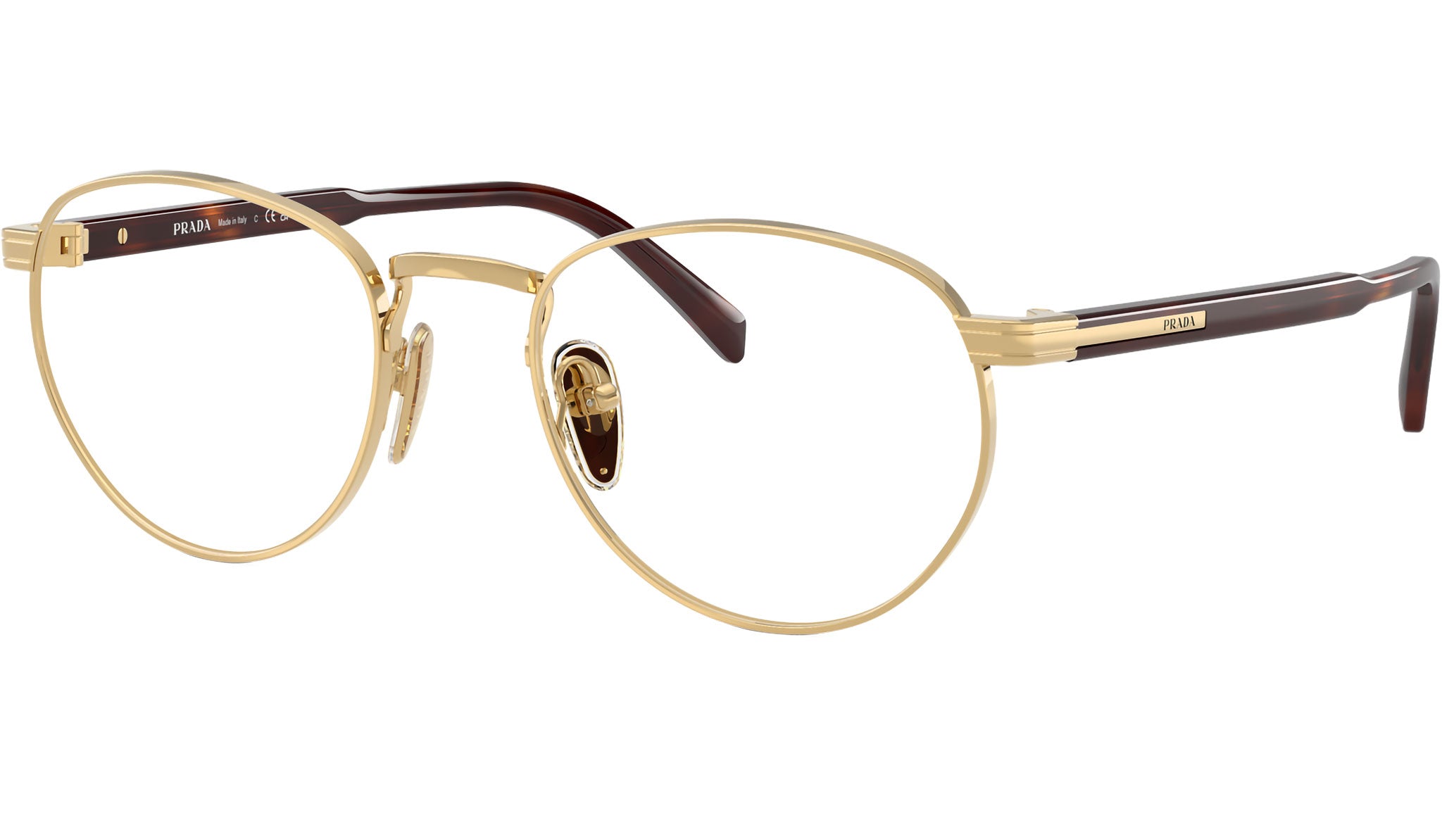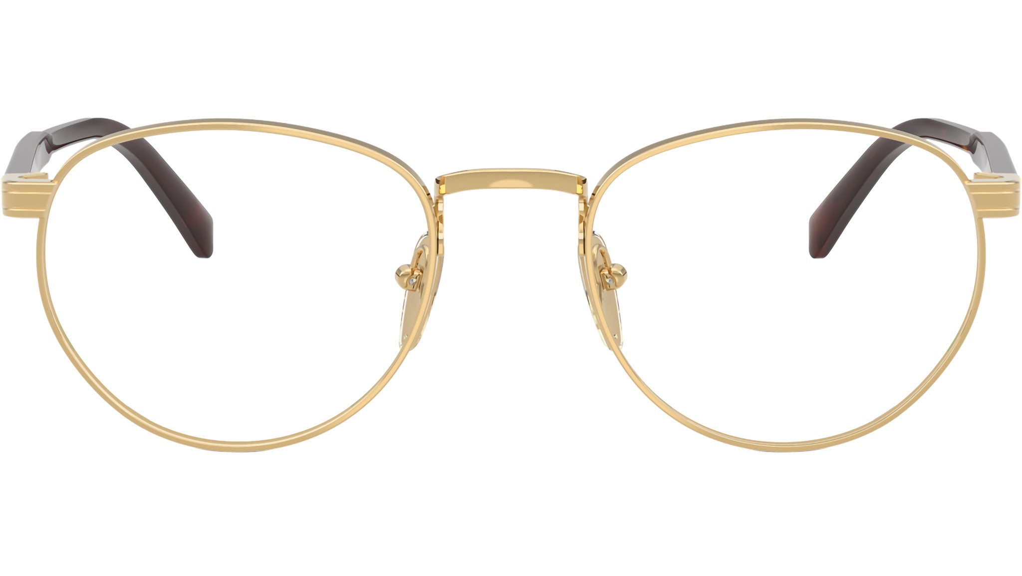 Occhiali da vista Prada PR B52V 5AK1O1 uomo con montatura pantos in metallo oro e lenti demo. Naselli regolabili. Linea: Signature. Codice modello: PRB52V. Codice colore: 5AK1O1. Made in Italy. Rivenditore autorizzato Prada online. Gli occhiali vengono consegnati con custodia e accessori originali e sono coperti dalla garanzia ufficiale di 12 mesi del produttore.