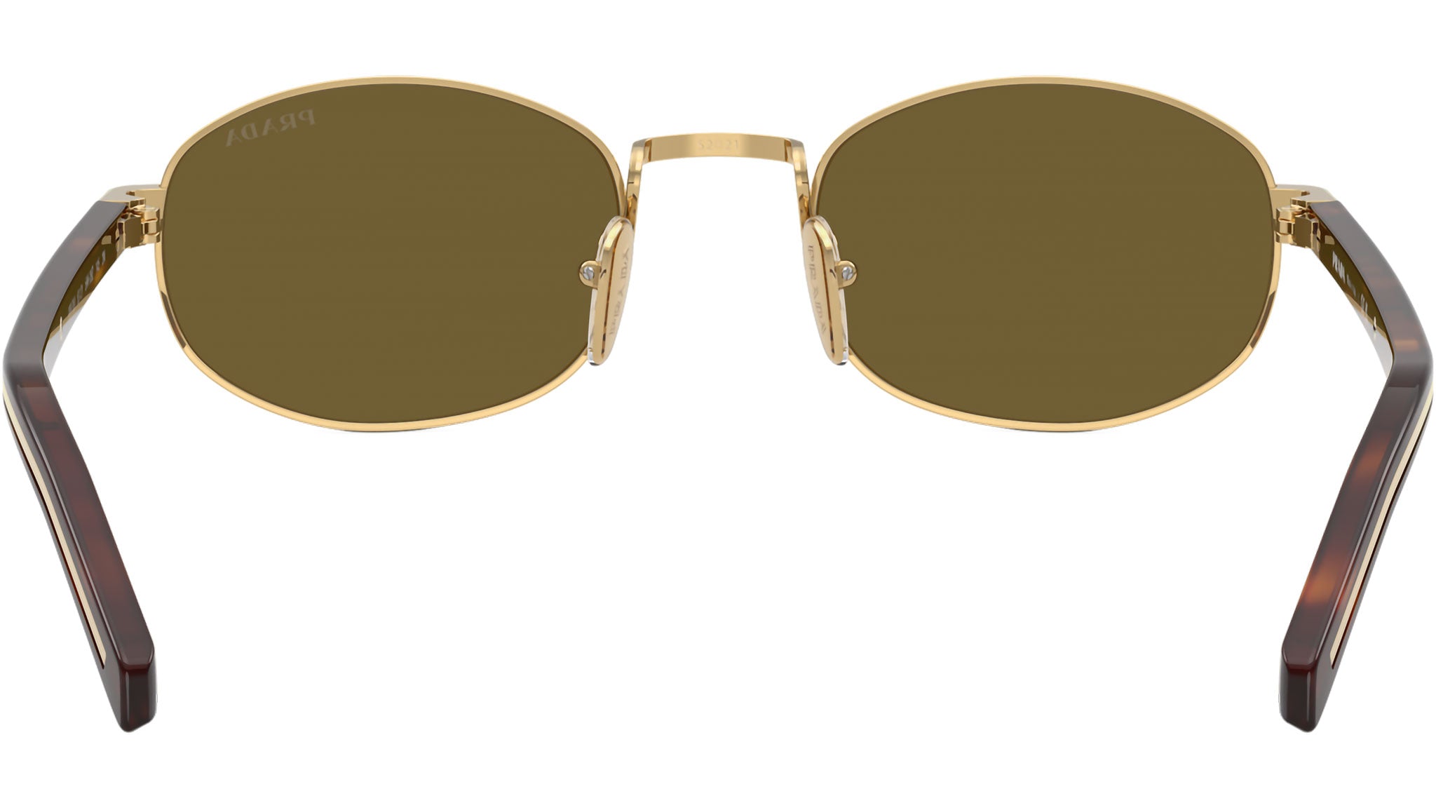 Occhiali da sole Prada PR B53S 5AK09Z donna con montatura ovale in acciaio oro e lenti in bio poliammide color marrone scuro. Naselli regolabili. Linea: Signature. Codice modello: PRB53S. Codice colore: 5AK09Z. Made in Italy. Rivenditore autorizzato Prada online. Gli occhiali vengono consegnati con custodia e accessori originali e sono coperti dalla garanzia ufficiale di 12 mesi del produttore.