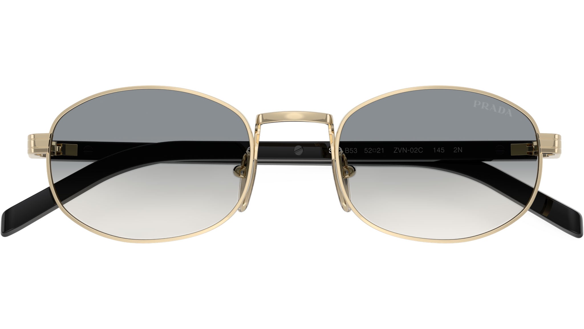 Occhiali da sole Prada PR B53S ZVN02C donna con montatura ovale in acciaio oro pallido e lenti in bio poliammide color grigio sfumato. Naselli regolabili. Linea: Signature. Codice modello: PRB53S. Codice colore: ZVN02C. Made in Italy. Rivenditore autorizzato Prada online. Gli occhiali vengono consegnati con custodia e accessori originali e sono coperti dalla garanzia ufficiale di 12 mesi del produttore.