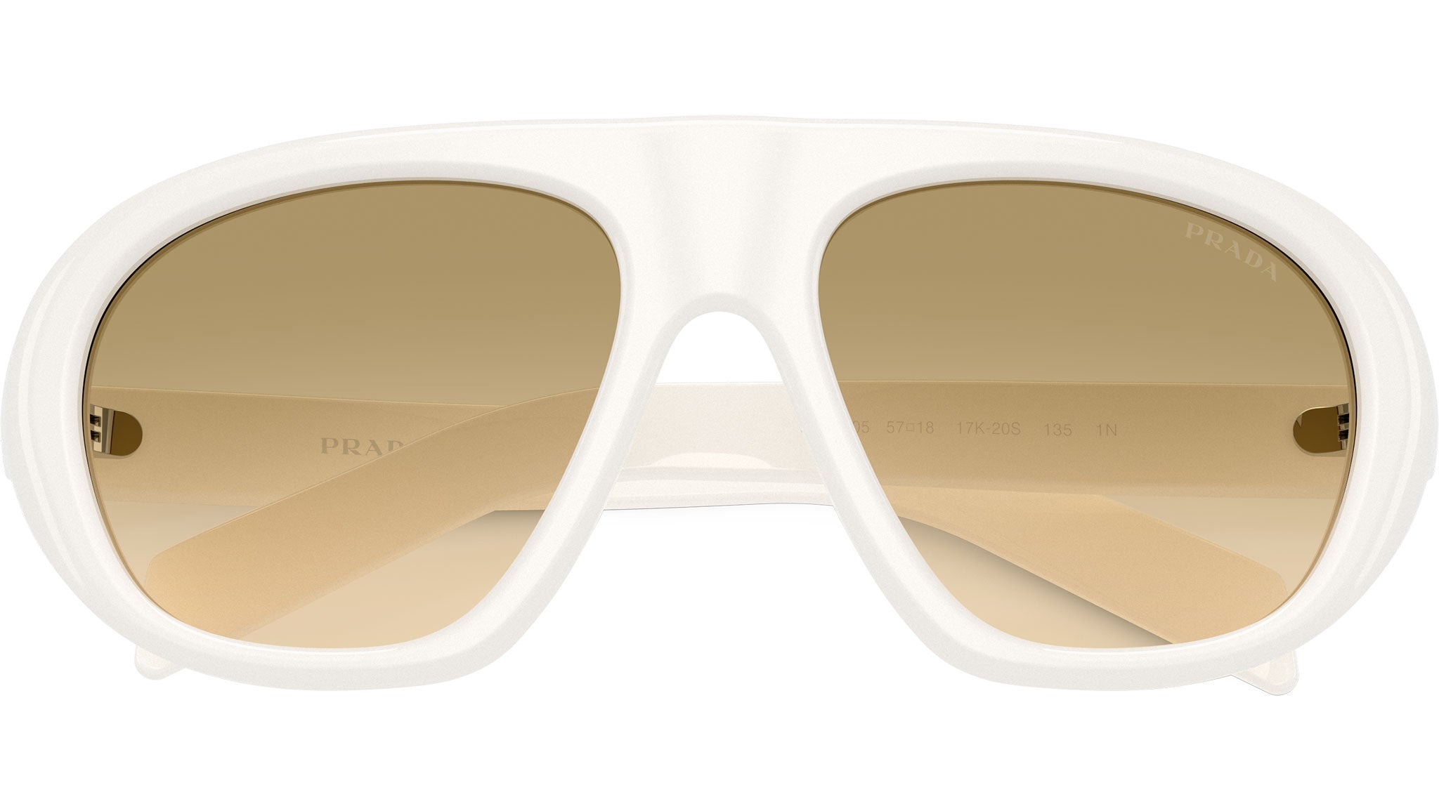 Occhiali da sole Prada PR C05S 17K20S donna con montatura geometrica in acetato talco e lenti in bio poliammide color giallo sfumato marrone. Vestibilità a ponte alto. Linea: Signature. Codice modello: PRC05S. Codice colore: 17K20S. Made in Italy. Rivenditore autorizzato Prada online. Gli occhiali vengono consegnati con custodia e accessori originali e sono coperti dalla garanzia ufficiale di 12 mesi del produttore.