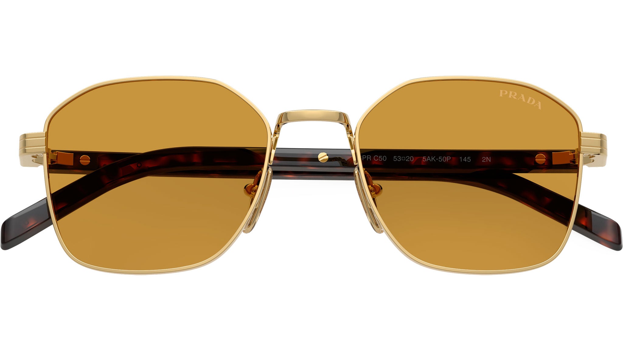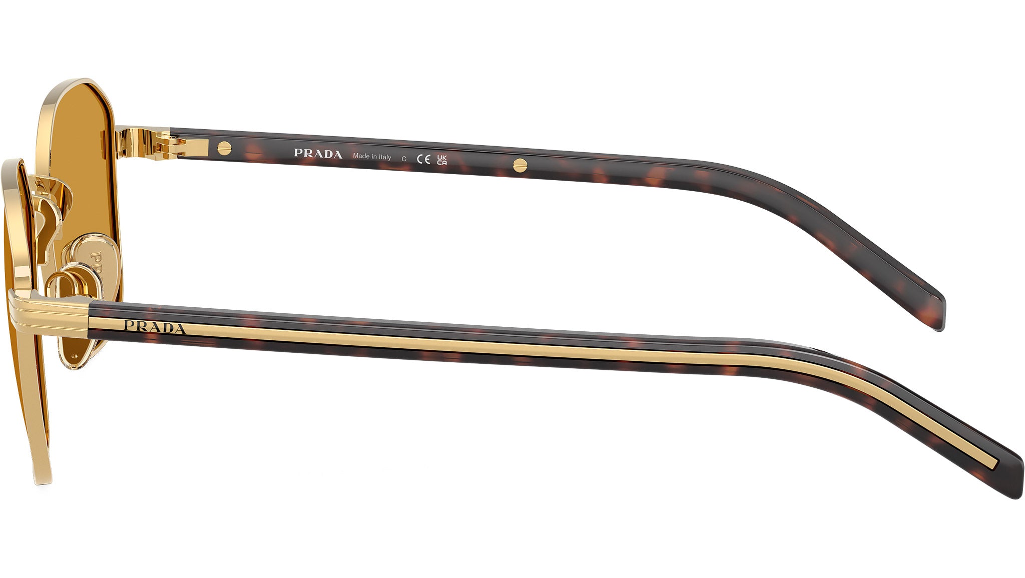Occhiali da sole Prada PR C50S 5AK50P uomo con montatura squadrata in acciaio oro e lenti in bio poliammide color miele scuro. Naselli regolabili. Linea: Heritage. Codice modello: PRC50S. Codice colore: 5AK50P. Made in Italy. Rivenditore autorizzato Prada online. Gli occhiali vengono consegnati con custodia e accessori originali e sono coperti dalla garanzia ufficiale di 12 mesi del produttore.