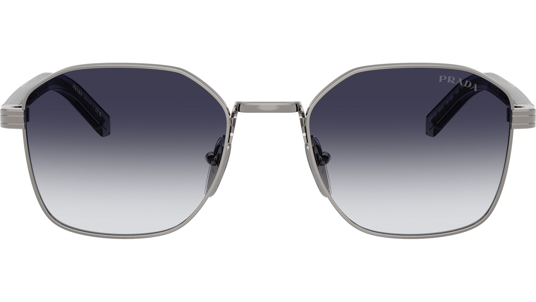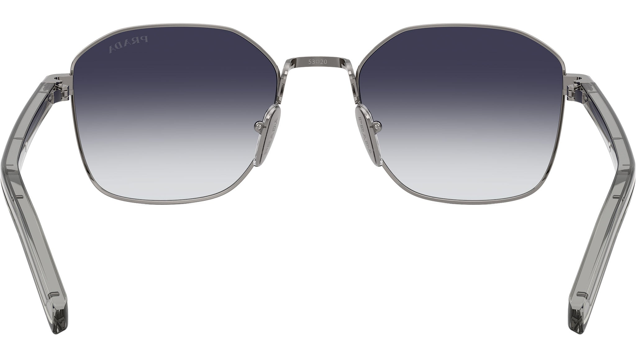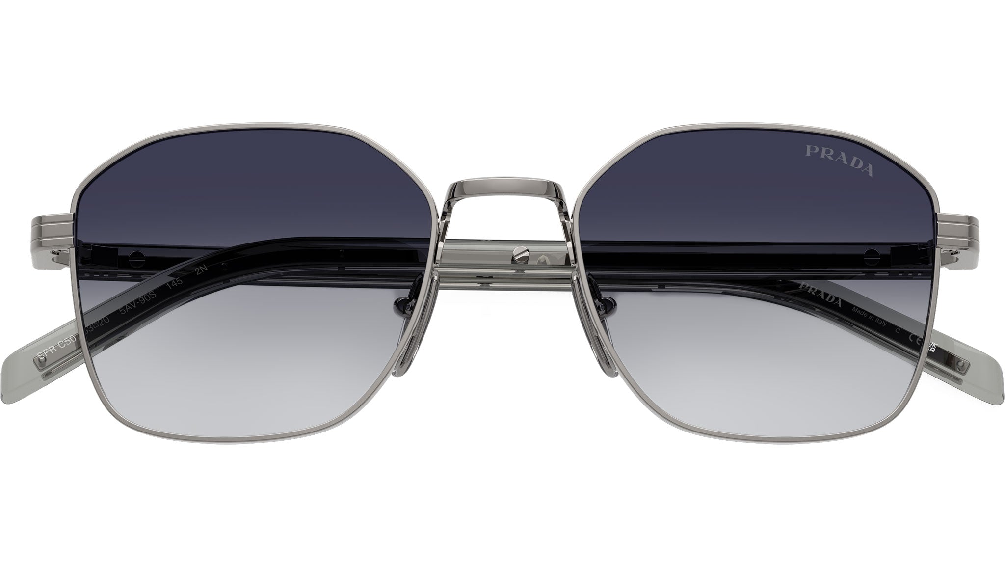 Occhiali da sole Prada PR C50S 5AV90S uomo con montatura squadrata in acciaio canna di fucile e lenti in bio poliammide color grigio sfumato. Naselli regolabili. Linea: Heritage. Codice modello: PRC50S. Codice colore: 5AV90S. Made in Italy. Rivenditore autorizzato Prada online. Gli occhiali vengono consegnati con custodia e accessori originali e sono coperti dalla garanzia ufficiale di 12 mesi del produttore.