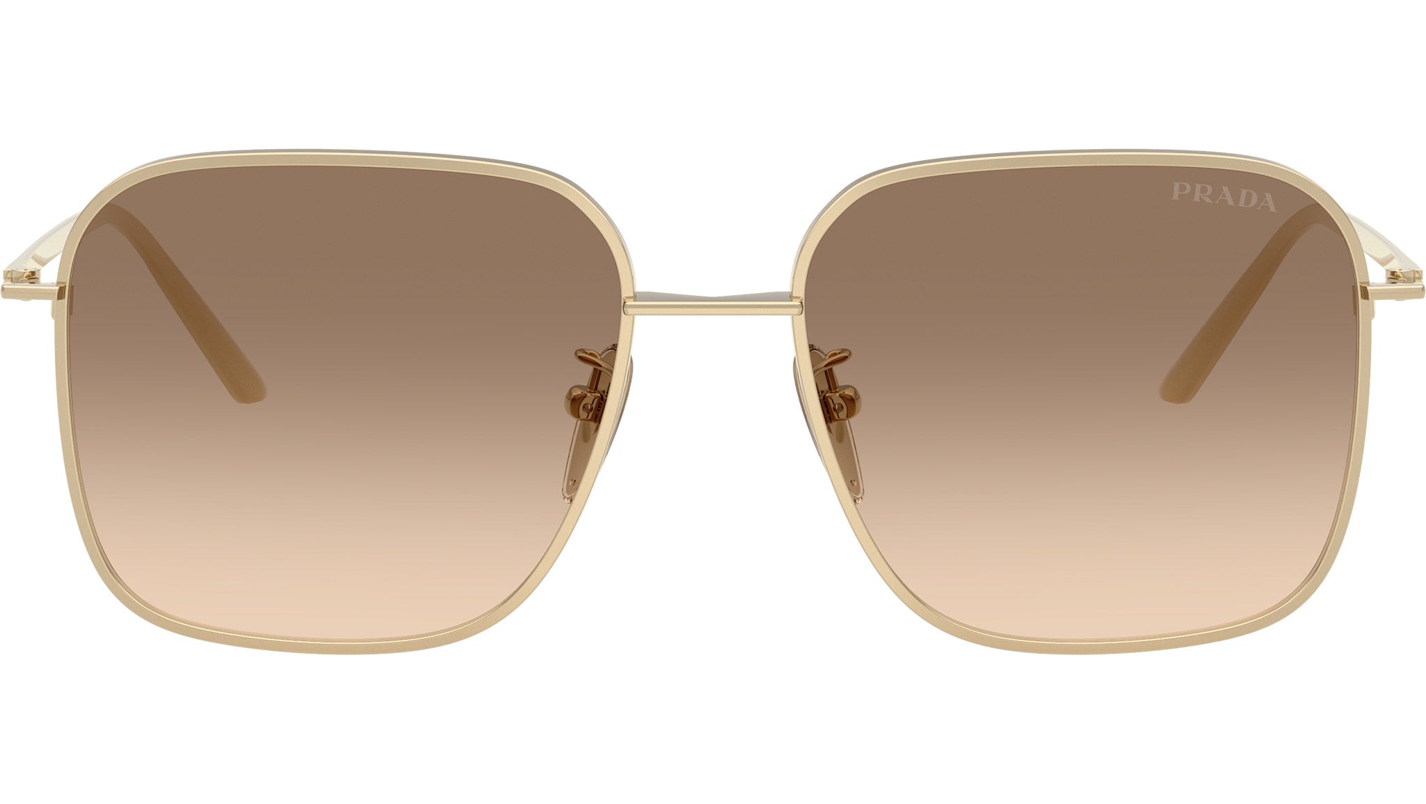 Occhiali da sole Prada PR C54SD ZVN50T donna con montatura squadrata in metallo oro chiaro e lenti in bio poliammide color marrone sfumato grigio chiaro. Vestibilità a ponte basso. Linea: Essential. Codice modello: PRC54SD. Codice colore: ZVN50T. Made in Italy. Rivenditore autorizzato Prada online. Gli occhiali vengono consegnati con custodia e accessori originali e sono coperti dalla garanzia ufficiale di 12 mesi del produttore.