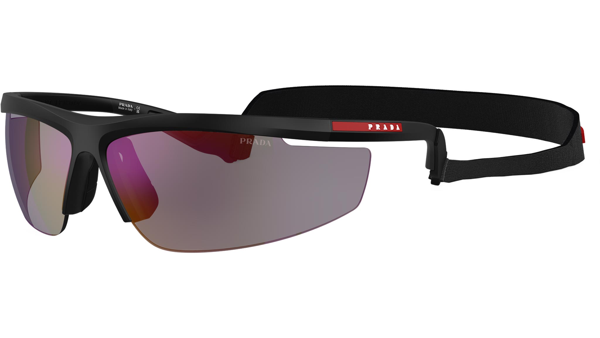 Occhiali da sole Prada Linea Rossa PS A02S 1BO10J uomo con montatura d-frame in iniettato nero opaco e lenti in poliammide color blu scuro a specchio viola. Vestibilità a ponte alto. Linea: Active. Codice modello: PSA02S. Codice colore: 1BO10J. Made in Italy. Rivenditore autorizzato Prada Sport online. Gli occhiali vengono consegnati con custodia e accessori originali e sono coperti dalla garanzia ufficiale di 12 mesi del produttore.