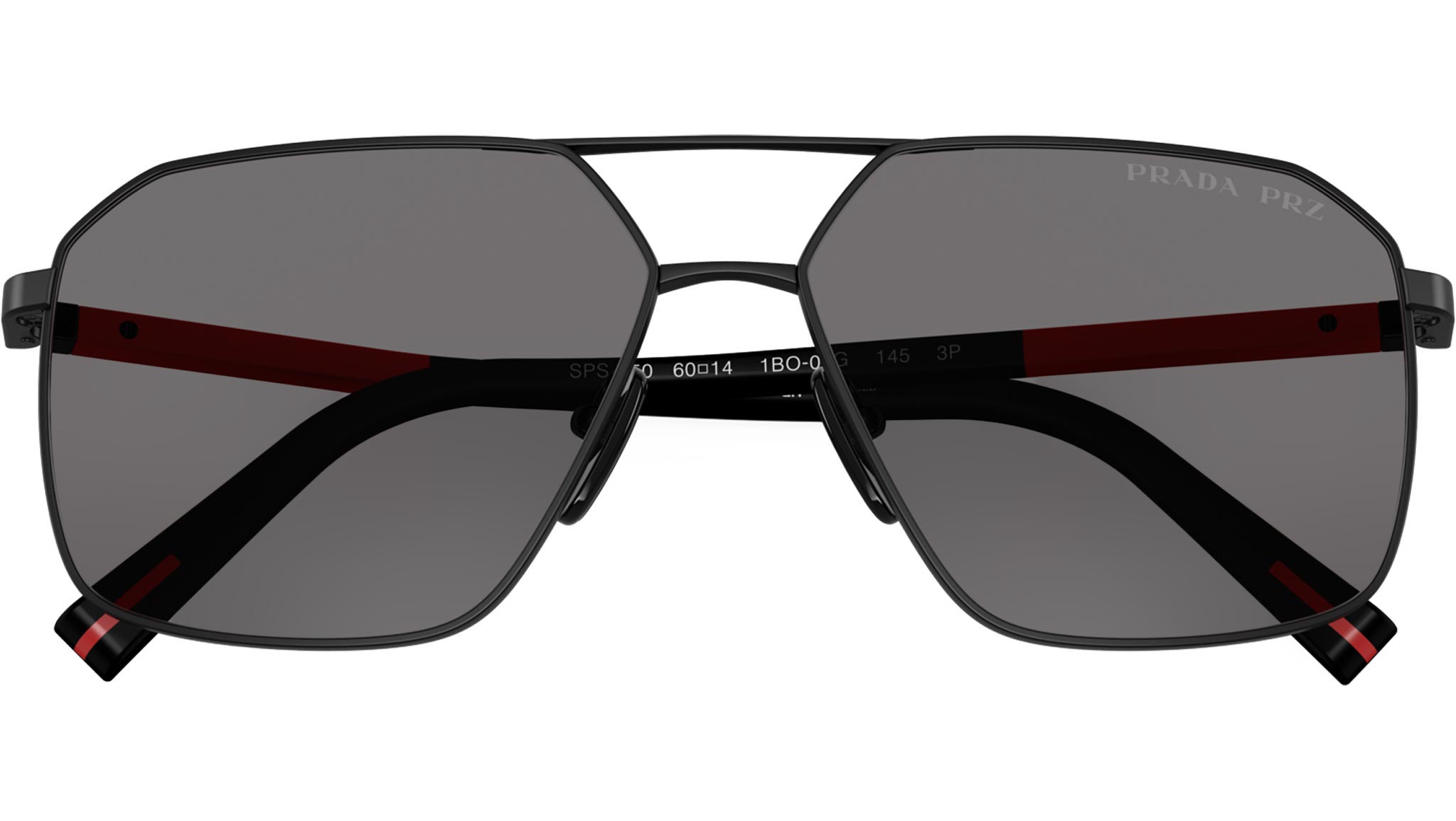 Occhiali da sole Prada Linea Rossa PS A50S 1BO02G uomo con montatura geometrica in metallo nero opaco e lenti in CR-39 color grigio scuro polar. Naselli regolabili. Linea: Lifestyle. Codice modello: PSA50S. Codice colore: 1BO02G. Made in Italy. Rivenditore autorizzato Prada Sport online. Gli occhiali vengono consegnati con custodia e accessori originali e sono coperti dalla garanzia ufficiale di 12 mesi del produttore.