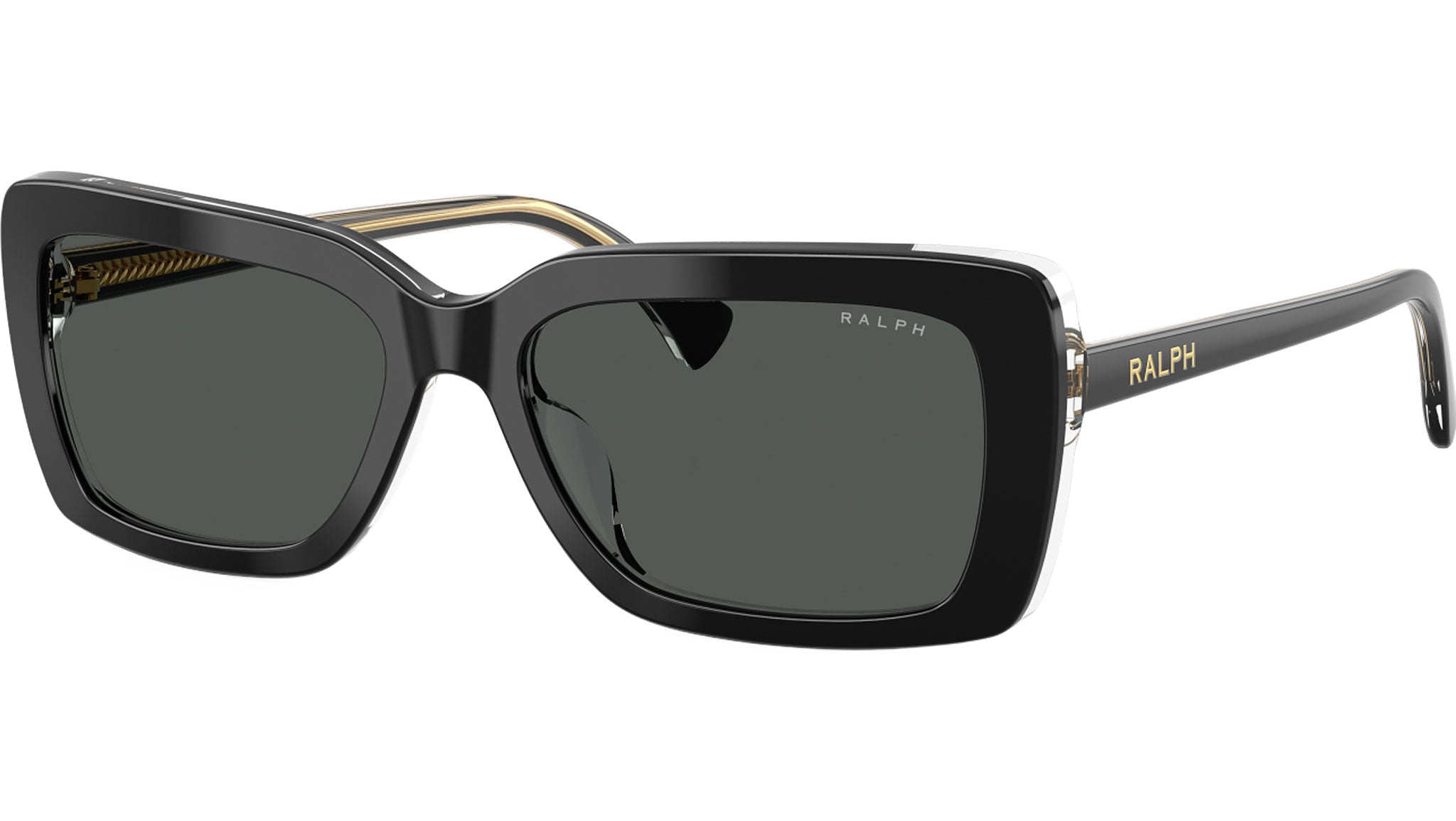 Occhiali da sole Ralph RA5342U 629787 con montatura rettangolare in acetato nero lucido su trasparente e lenti in poliammide color grigio. Fit universale. Linea: Essential. Codice modello: 0RA5342U. Codice colore: 629787. Rivenditore autorizzato Ralph online. Gli occhiali vengono consegnati con custodia e accessori originali e sono coperti dalla garanzia ufficiale di 12 mesi del produttore.